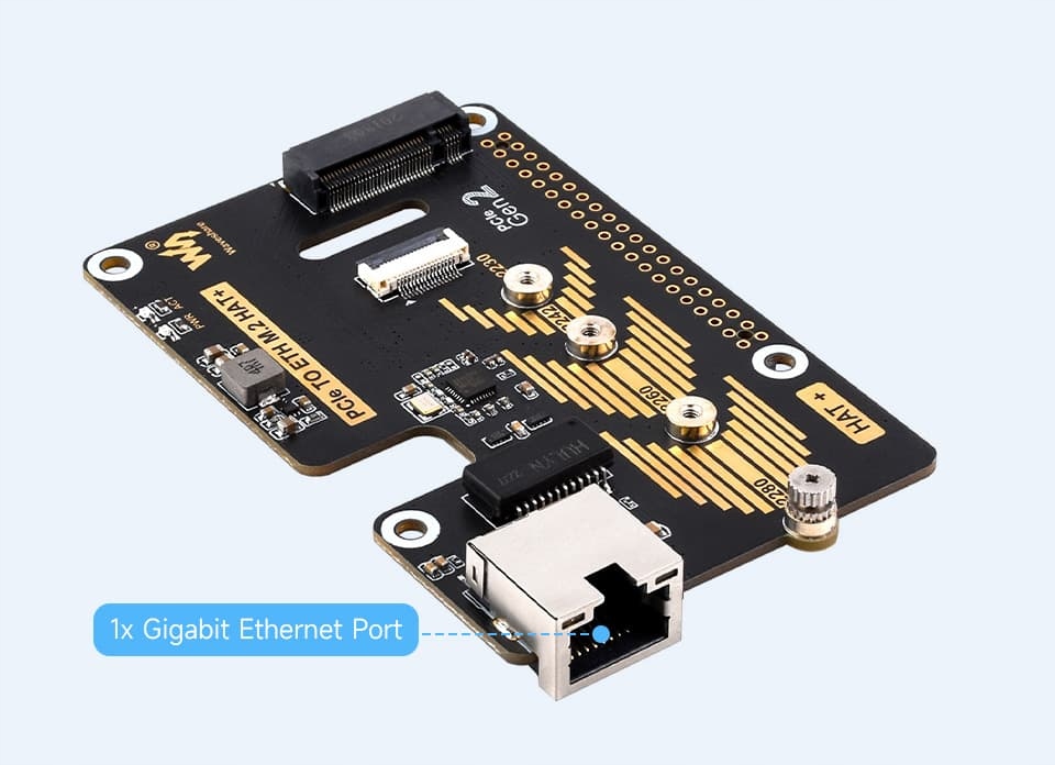 Розширене розширення, яке дозволяє швидко обробляти диски NVME та забезпечує порт Gigabit Ethernet. Завдяки дотриманню стандарту HAT+ та використанню роз'єму PCIE в Raspberry Pi 5, встановлення та конфігурація відбувається автоматично, значно підвищуючи ефективність та функціональність усієї системи.