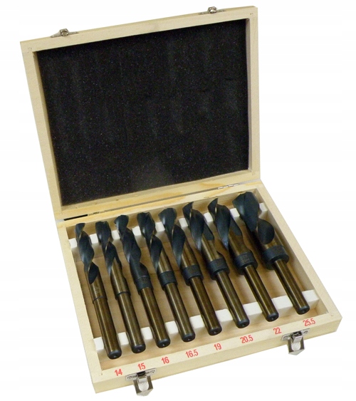 Набір спіральних свердел NWKa з циліндричним хвостовик. У набір входять свердла розміром 14, 15, 16, 16,5, 19, 20,5, 22, 25,5 мм.