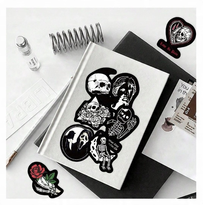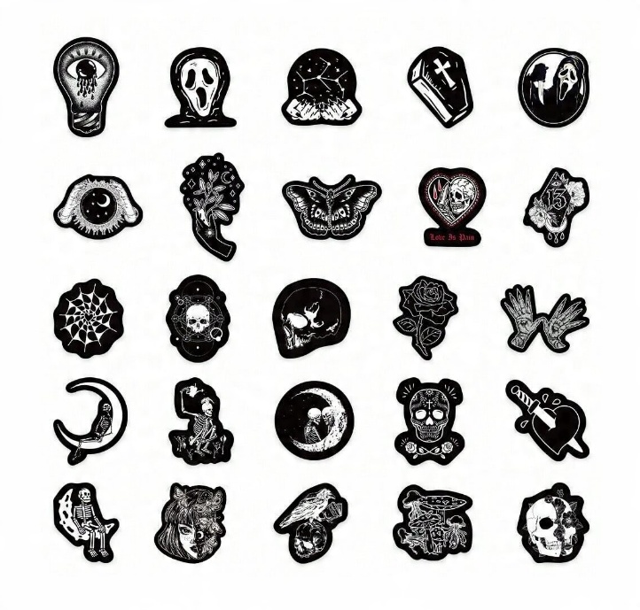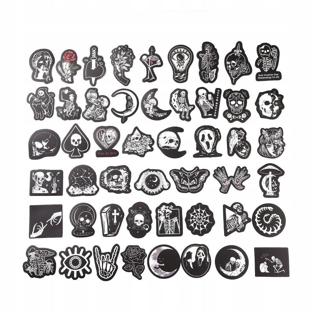NWL34 Naklejki STICKER BOMB WLEPY wlepki SZKIELETY HORROR CZARNE 50szt