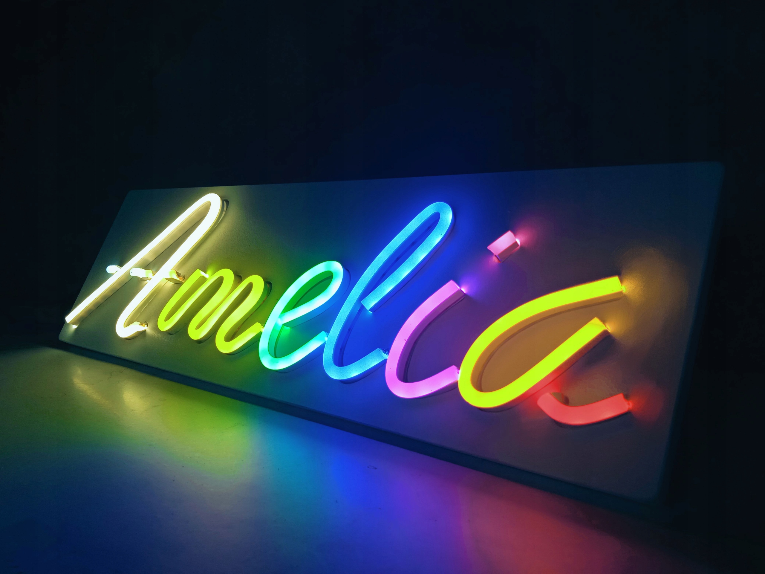 Неон може бути одного кольору або складатися з різних елементів, які світяться по-різному, наприклад, кожна буква може бути різного кольору, це не вплине на ціну. (приклад на фото)