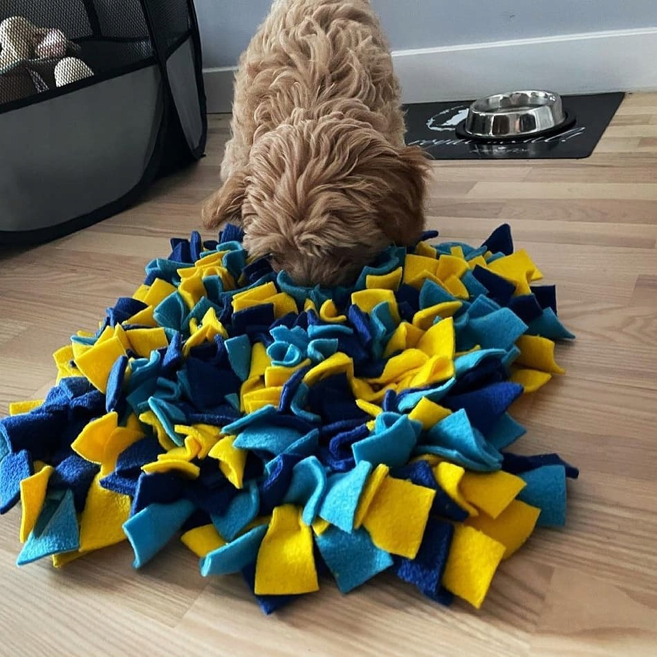 Наш нюхальний килимок - ідеальне рішення для кожної собаки, незалежно від породи чи розміру. Завдяки тому, що ласощі заховані між шматками тканини, це ефективно спонукає кожну собаку шукати свою нагороду. Килимки для нюхання стимулюють природний інстинкт собаки використовувати ніс і шукати їжу.