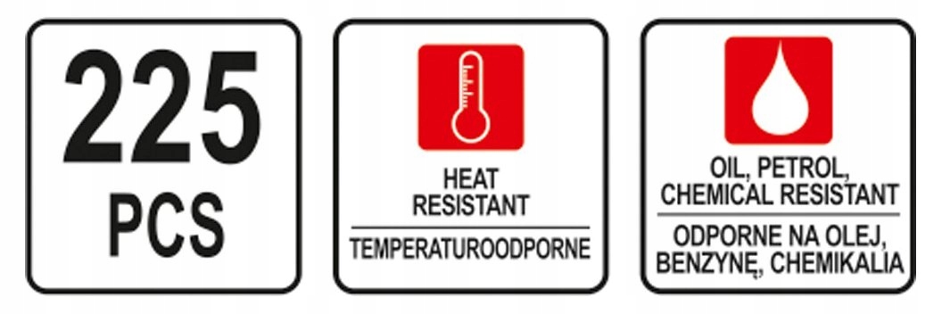Набір герметичних речовин містить 225 штук у різному розмірі. Li>