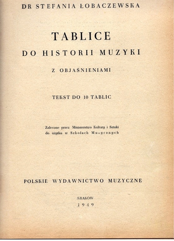 Łobaczewska TABLICE DO HISTORII MUZYKI Z OBJAŚNIENIAMI Tekst do tablic 1949
