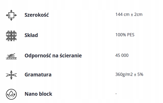 Тканина витончена обробкою Nano Block - це це покриття, яке захищає тканину від миттєвого вбирання води, томуви можете видалити розлите вино чи сік без сліду плями.
