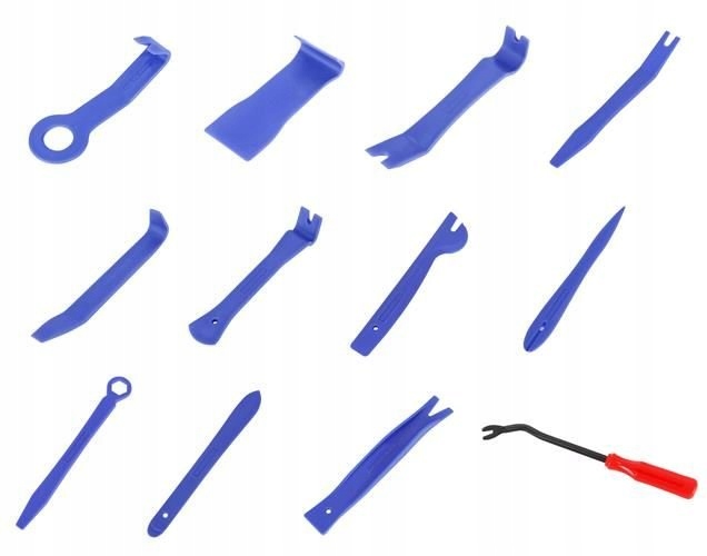 - 13 в 1 – в набір входить 11 різних знімачів, чохол + БЕЗКОШТОВНО засіб для зняття запонок. Набір ідеально підходить для демонтажу оббивки, кліпс і автомобільних планок.