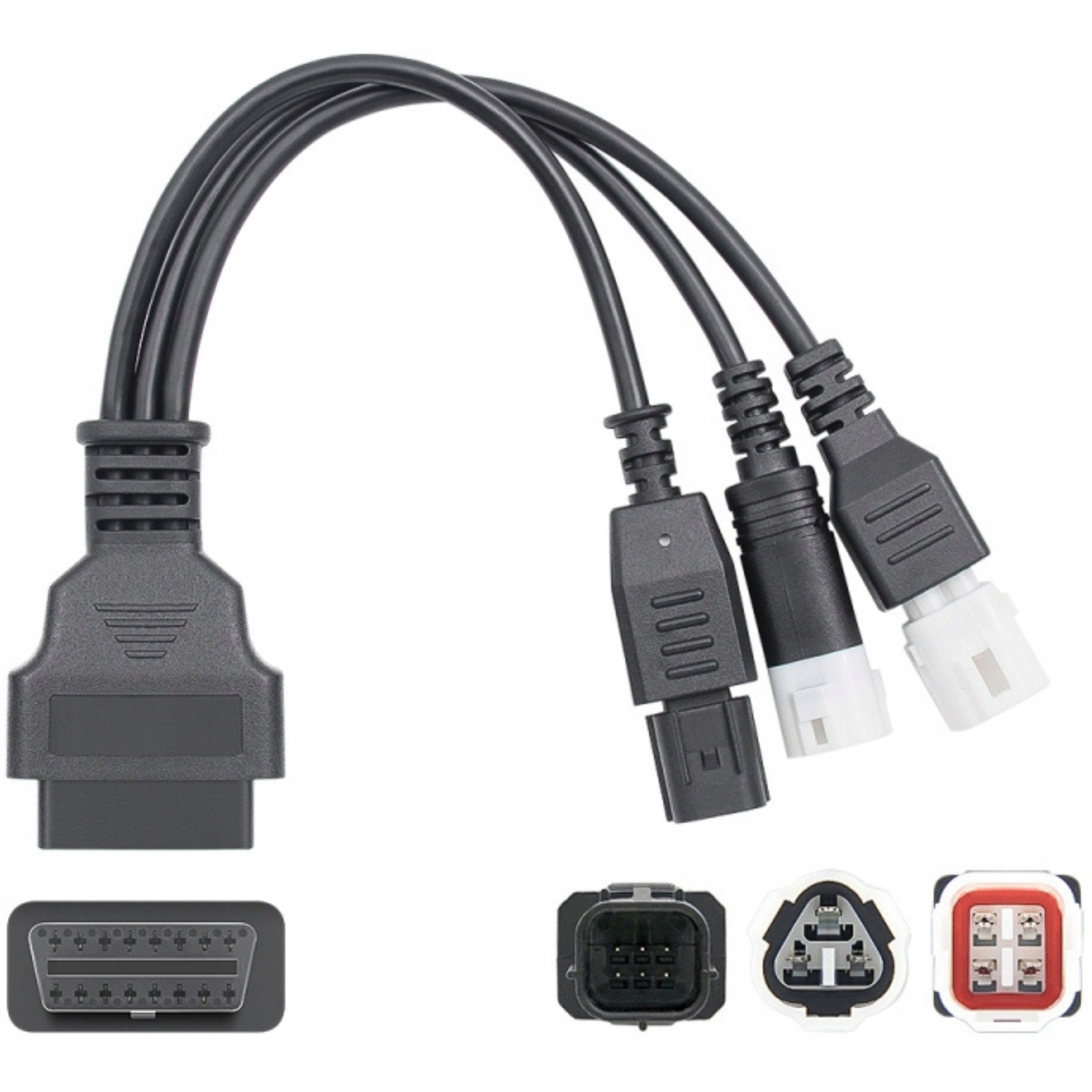 - Тип адаптера: 3-в-1 (3-контактний Yamaha / 4-контактний Yamaha / 6-контактний Honda → OBD2 16-контактний)