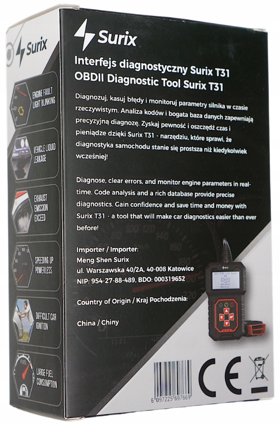 OBD2 ДІАГНОСТИЧНИЙ ІНТЕРФЕЙС СКАНЕР АВТОМОБІЛЬНИЙ ТЕСТЕР ПОЛЬСЬКИЙ SURIX T31