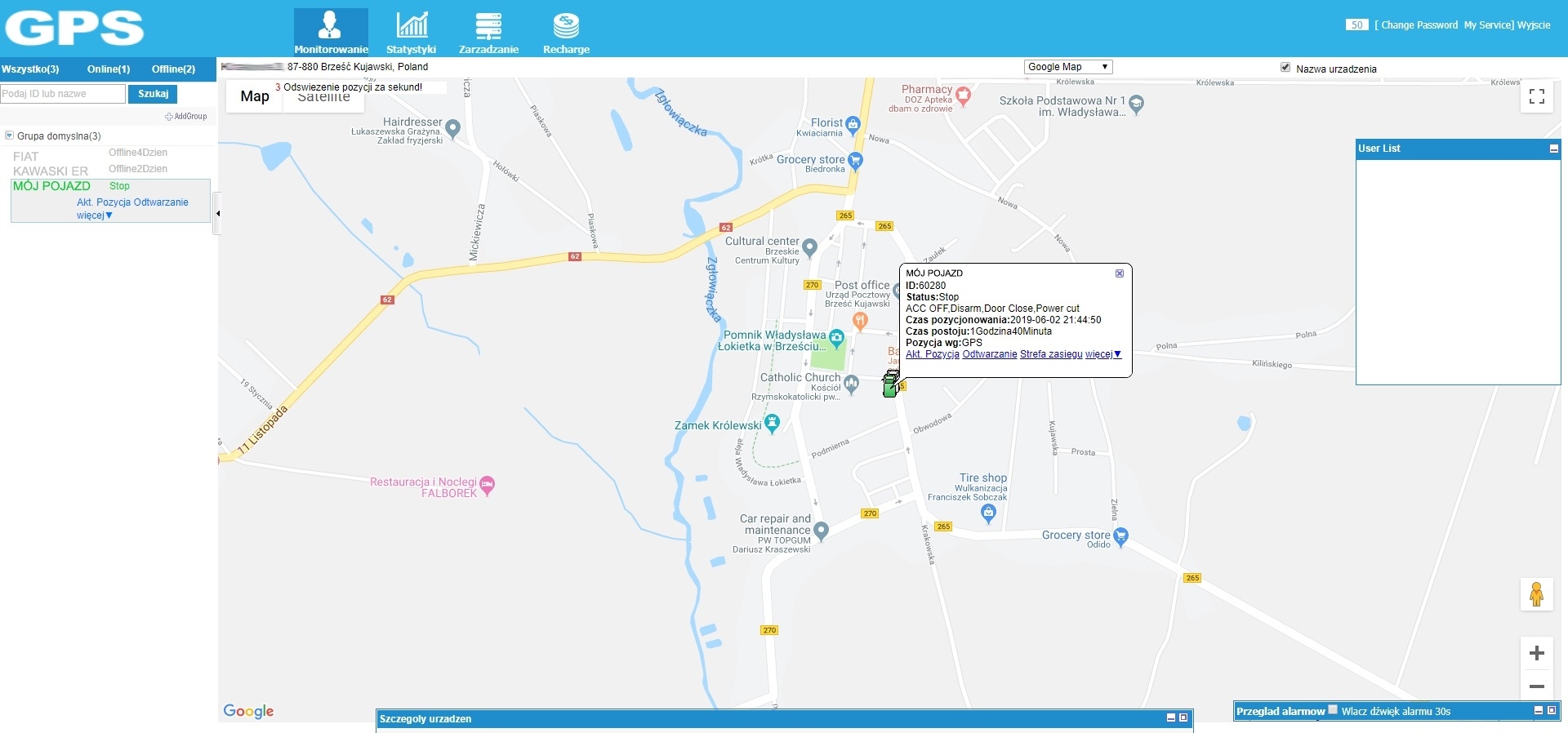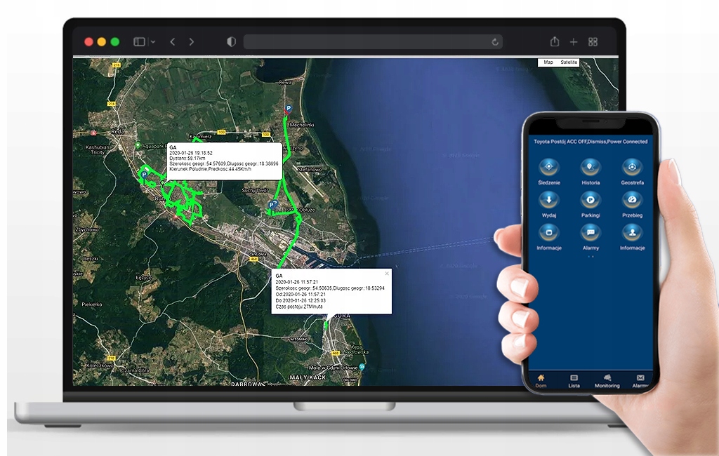 Коли обладнання буде готове до роботи, просто увійдіть у безкоштовну програму польською мовою або на веб-сайт, щоб перевірити місцезнаходження пристрою за допомогою сигналу GSM/GPS.