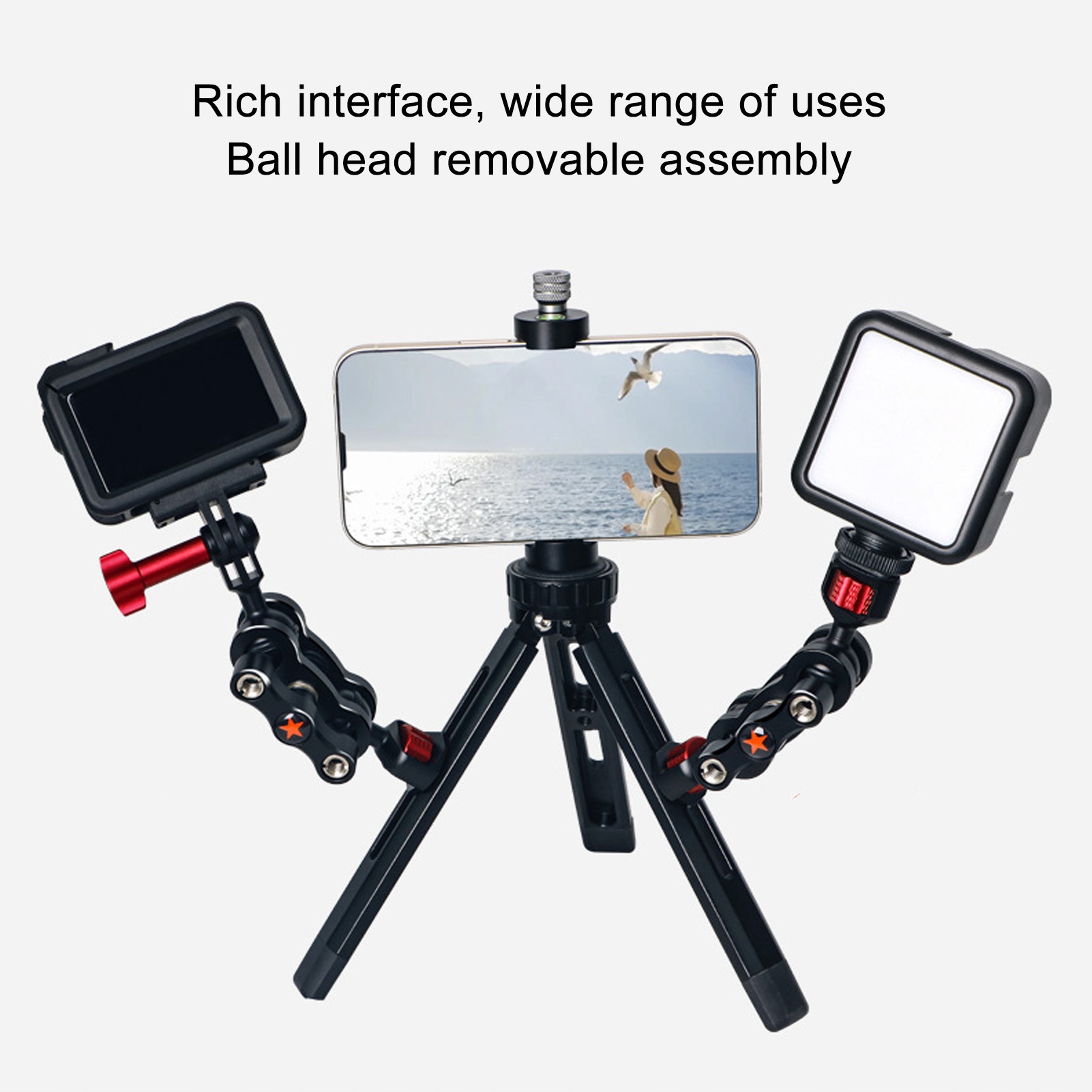 Функція:1. ЛЕГКО ВСТАНОВИТИ: шарнірна рука, що обертається на 360 градусів, оснащена гвинтами на 1/4 дюйма та знімачем екшн-камери на кожному кінці. Його можна вільно встановлювати на штативи та інші пристрої з еквівалентними інтерфейсами