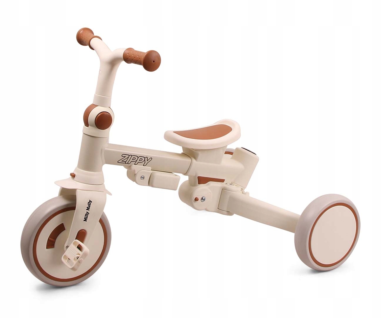 Zippy є стабільним і безпечним, має сучасну конструкцію, зручну профілеровану сидячу, обертану на 180 градусів, що дозволить проїзд або ззаду. Велосипед був обладнаний бар'єром, який захищає дитину від випадання, три точки регульованих ременів безпеки та підставки для ніг. Після демонтажу ручки, бар'єрів та кабінок Zippa, він буде служити трьома велосипедним велосипедом, а потім, коли дитина вже освоїла основи їзди після приєднання до задніх коліс як класичного хрестового велосипеда. Завдяки функції "вільного колеса" дитина може вільно робити педалі, а батько все ще може виправити швидкість руху.