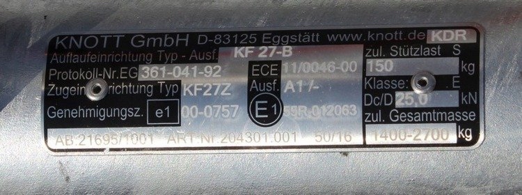 КНОТТ KF27 2700 кг розгінний пристрій причепа з консоллю