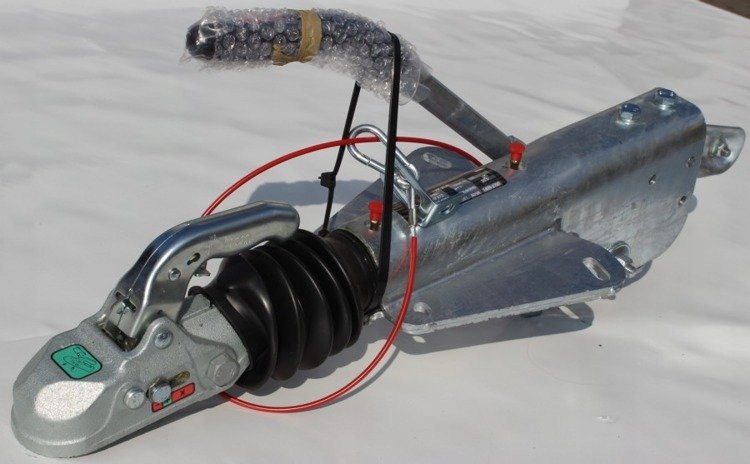 Предметом продажу є новий, оригінальний обгінний пристрій KF27 від відомої компанії KNOTT. Пристрій призначений для причепів з V-подібним дишлом. Гальмо має гачок діаметром гака 50 мм. Допустима загальна маса причепа з гальмом 1400 - 2700 кг.