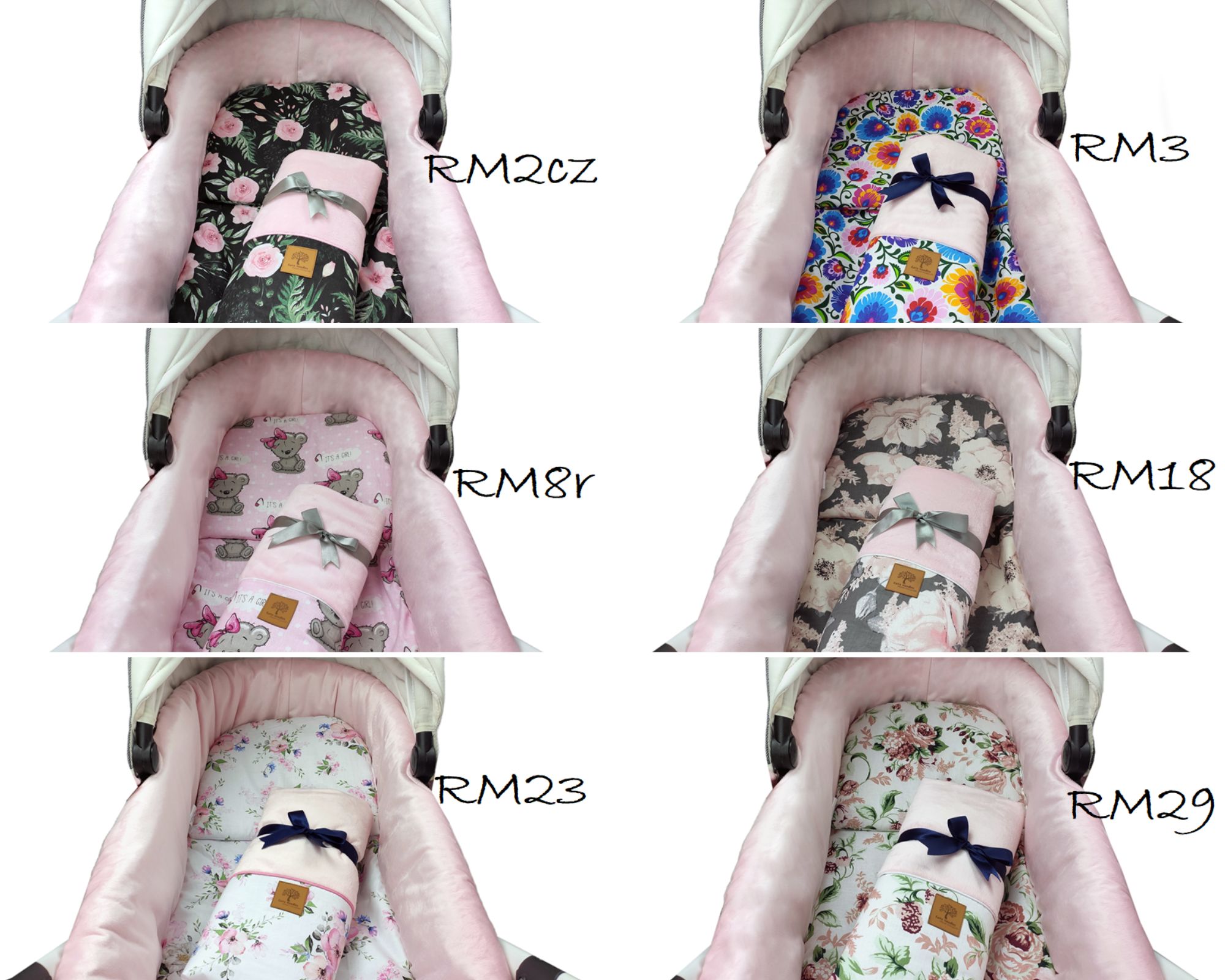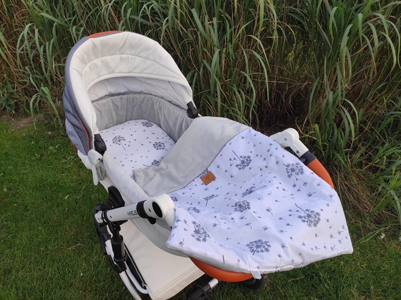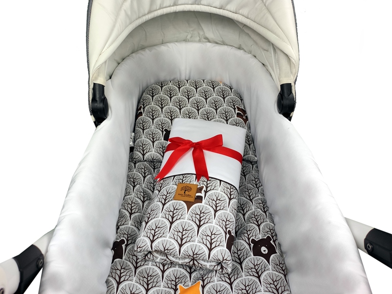 - Щільне прилягання можливе завдяки міцній гумі, вшитій усередину вкладиша. Ви можете розтягнути все як забажаєте за допомогою вшитих ременів, які створюють декоративні банти з обох боків коляски.