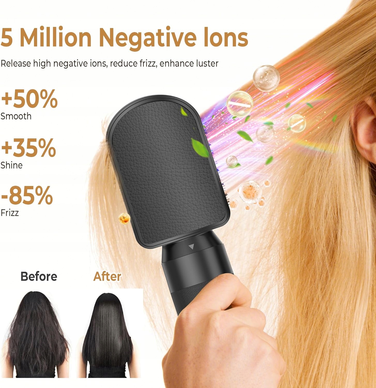 - Фен з негативними іонами - набір пензлів для волосся містить 200 мільйонів негативних іонів, щоб уникнути волосся. Сильний повітряний потік витікає з бігуді і створює повітряний потік відповідно до руху годинника, що зміцнює ефект і змушує волосся автоматично прилипати до поверхні. Створіть об'ємне око, гладкі та природні локони без надмірного нагрівання.