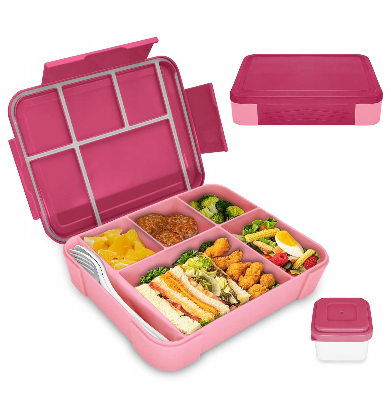 обідня контейнер для дошкільнят має 5 відділень, в яких можна розділити основне блюдо, фрукти, закуски, салат, сендвіч і соус.