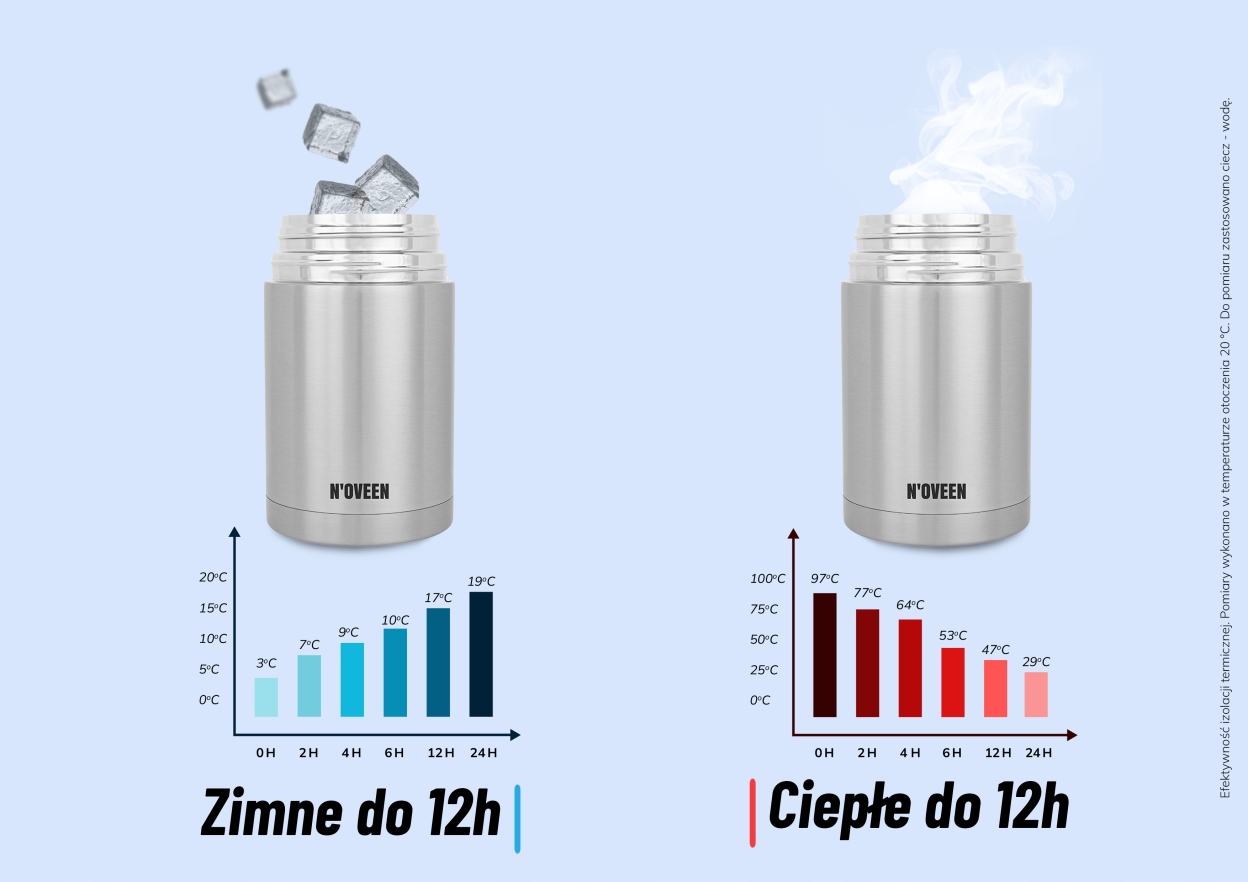 Термос має щільну кришку для транспортування рідкого вмісту, наприклад, супів, соусів.