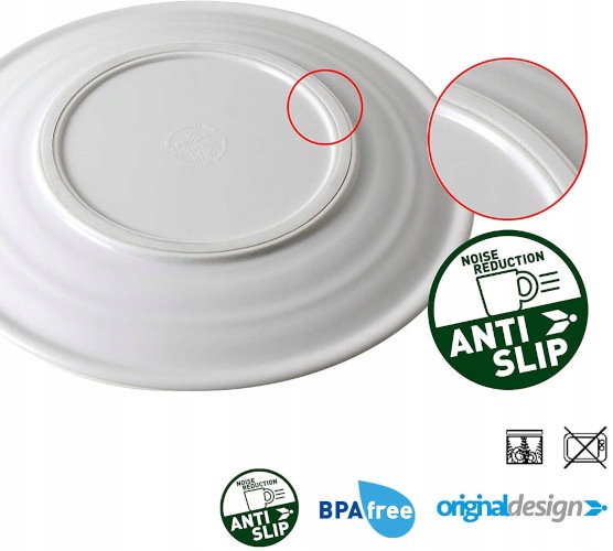 Всі елементи набору оснащені системою проти ковзання ANTI SLIP. Кожне блюдо приклеєне до дна гумою. Це робить посуд стабільним, а використання під час подорожі абсолютно безпечним і комфортним.