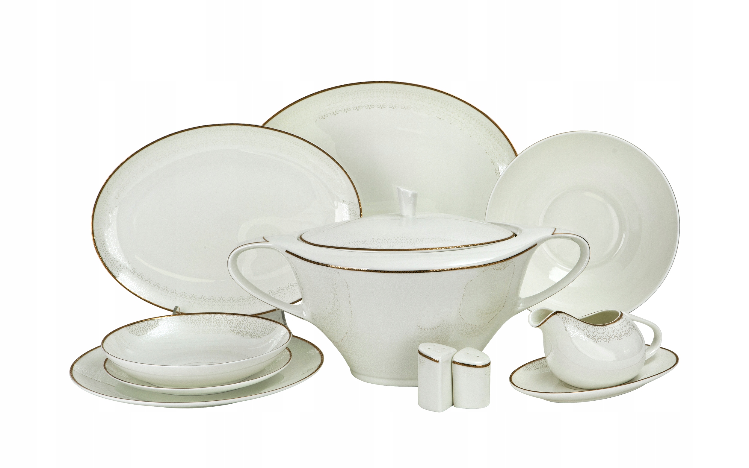 Сервіз шейк на 12 персон, виготовлений з порцеляни злегка кремового відтінку.