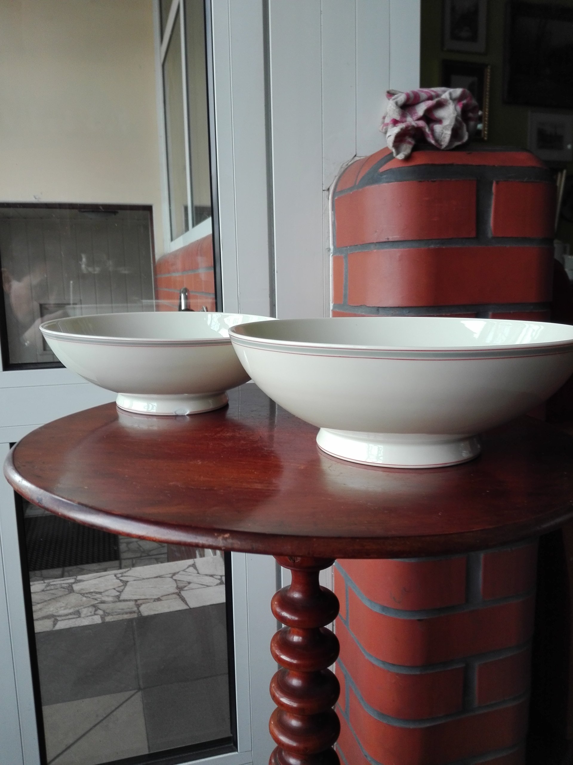 - Менша миска має скол біля основи, видно на фото. Решта посудин залишилися неушкодженими. Обережна доставка.