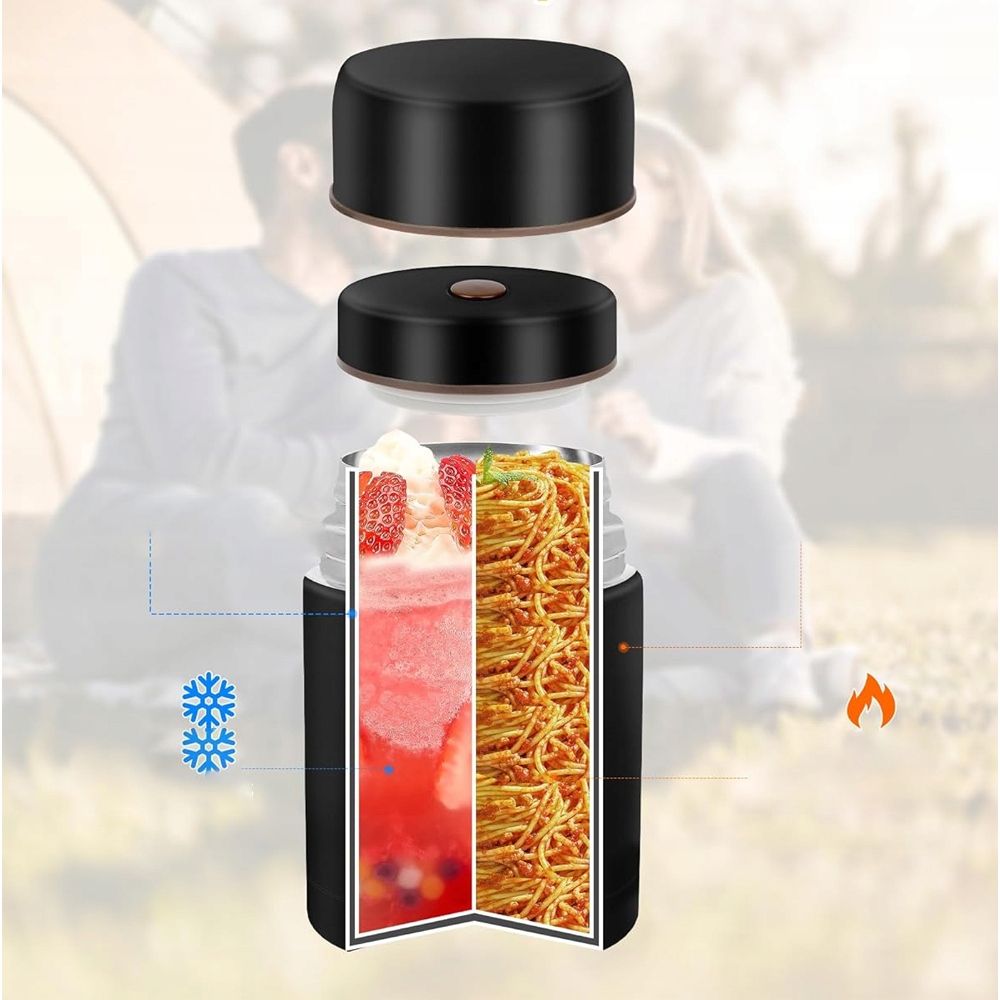 - Технологія вакуумної ізоляції забезпечує максимальну підтримку температури гарячої чи холодної їжі. Смачно і незалежно від погоди. Зберігати в теплі до 12 годин і заморожувати до 12 годин.