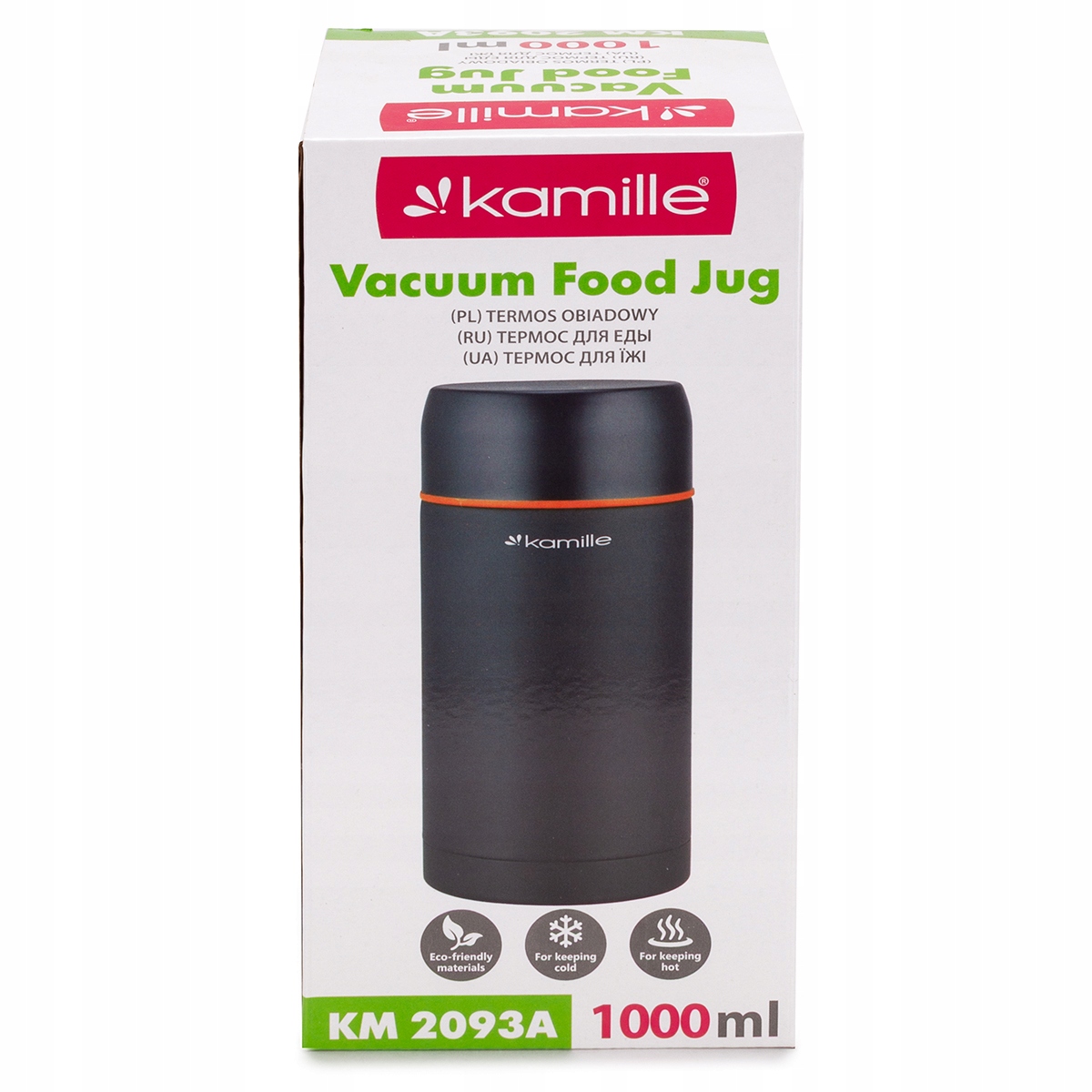 Обідній термос Kamille зручний у використанні, їсти в ньому гігієнічно і можна не боятися забруднити одяг під час їжі навіть у складних польових умовах, напр. під час шкільної екскурсії, на спортивному майданчику тощо