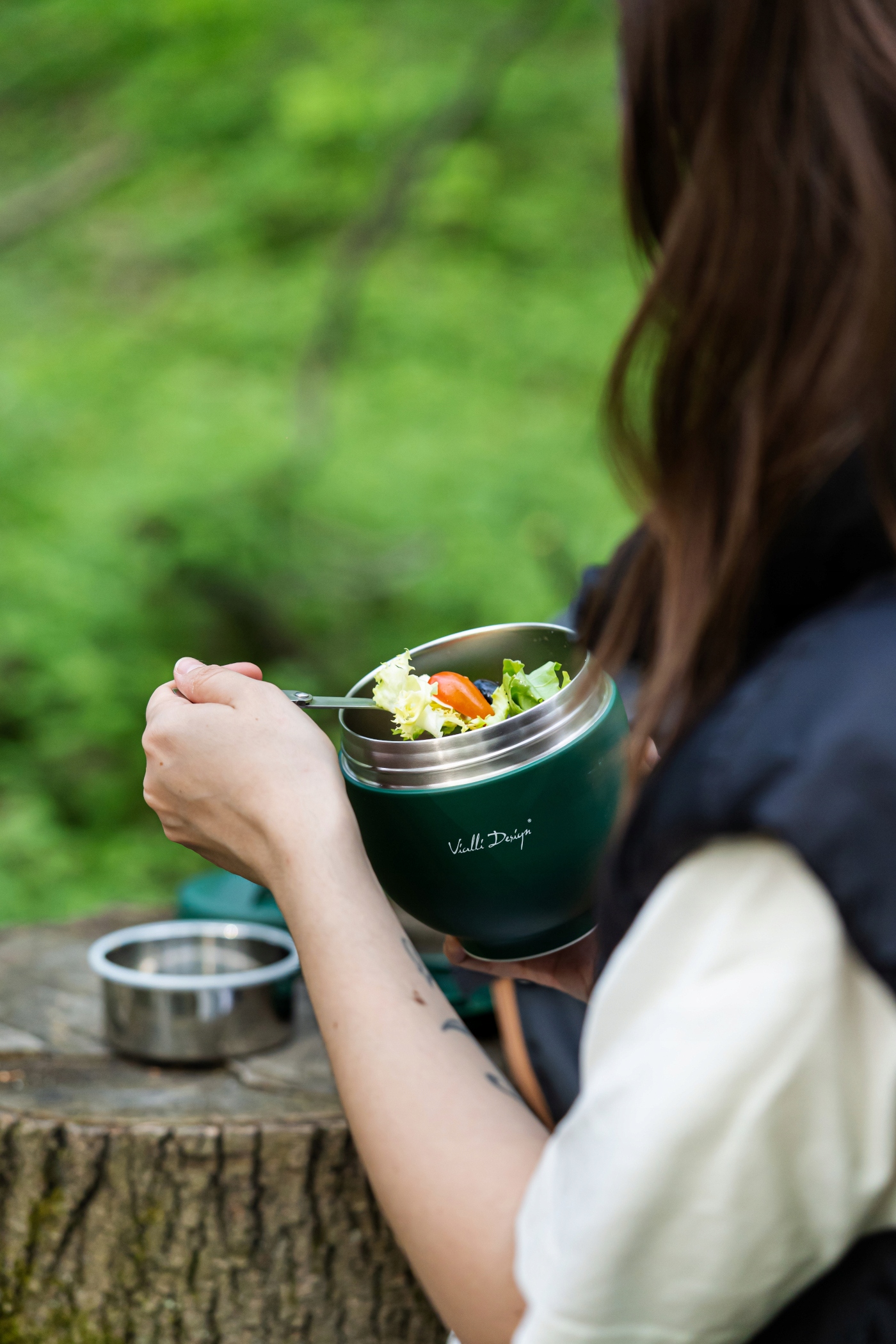 Обідній термос з контейнером і ложкою, великий 680 мл, зелений Vialli Design