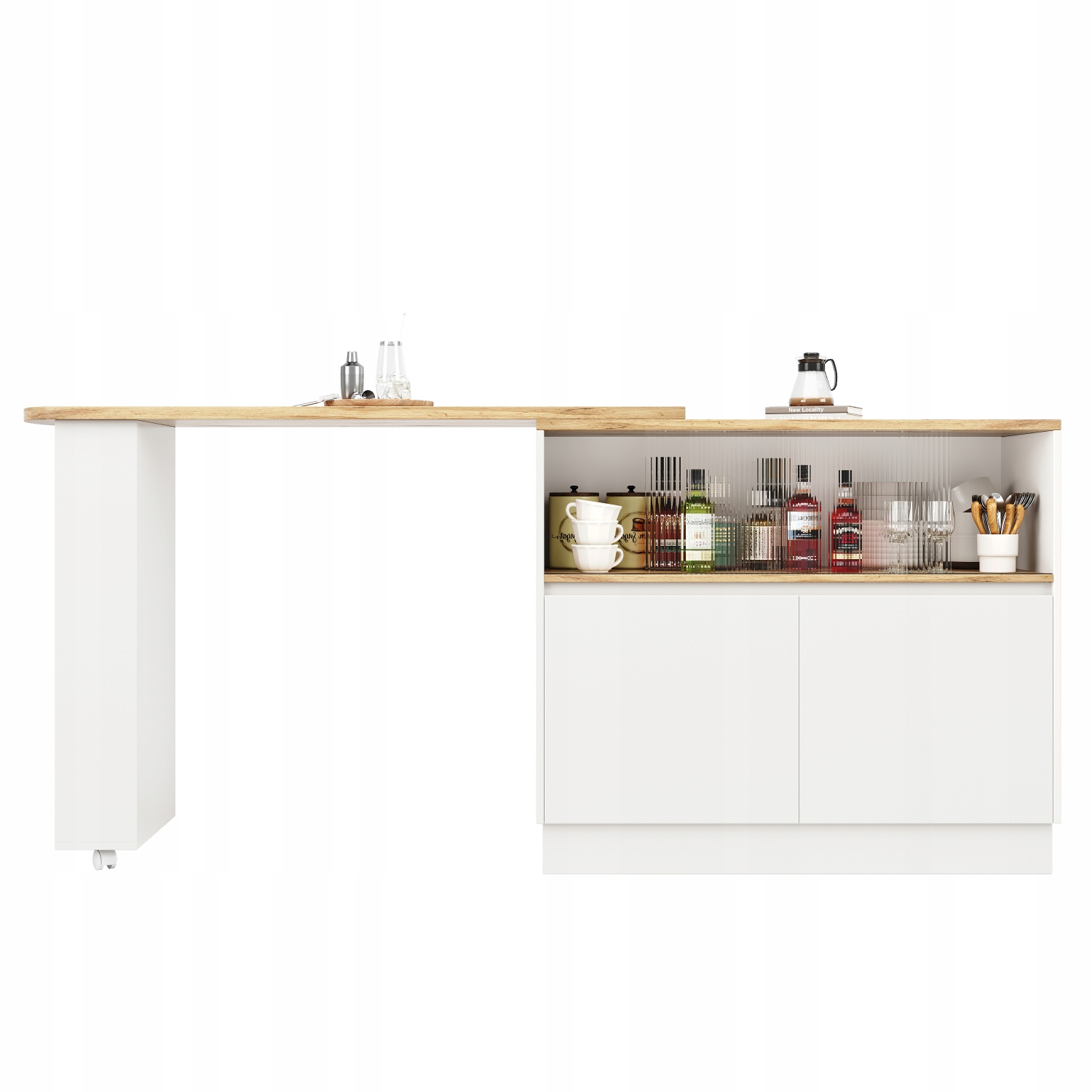 Просторе та універсальне зберігання: завдяки численним відділенням, зокрема відкритим полицям, ящикам і закритим дверцятам, він забезпечує спеціальний простір для зберігання різноманітних речей. Ви можете легко організувати та зберігати пляшки, столові прибори, дрібну кухонну техніку та спеції, забезпечивши легкий доступ до них, що допоможе вам підтримувати порядок у своєму домі. Вибрані високоякісні матеріали для довговічності та естетики: винна шафа виготовлена з високоякісних, екологічно чистих матеріалів і має міцну верхню частину, що робить її не тільки довговічною, але також гладкою та легкою для чищення. Натуральна деревина на стільниці додає тепла інтер’єру, підвищуючи загальну структуру та стабільність.
