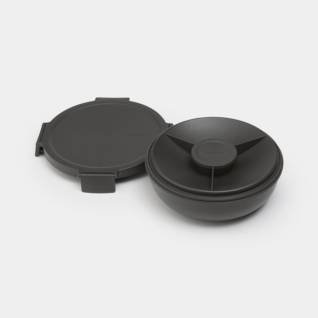 Чаша для салату від нового make & take бренда Brabantia має три частини для чітких аксесуарів та закритий контейнер для одягання. Після витягування контейнера просто струсіть миску, щоб інгредієнти з вставки суміш з салатом внизу. Чаша також ідеально підходить для одиночного -тота, макаронів, тушкованих тушонів. Дешевше, здоровіше, краще! У мисках є герметичні кришки з чотирма кліпами, що захищають їх від небажаного відкриття та наливання вмісту. Після використання миску ми можемо легко мити, також у посудомийній машині. Вони багатофункціональні - ви можете нагріти їжу в мікрохвильовій піч та замерзнути їжу.