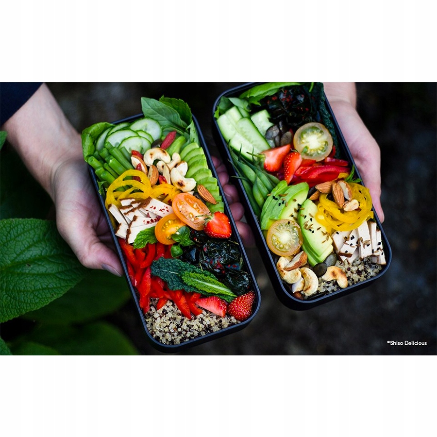 Оригінальна коробка Bento Bento MB виготовлена з пластику, що не містить шкідливих речовин BPA. Насолоджуйтесь усіма стравами та закусками без ризику для здоров'я. 4 Дві окремі пластикові коробки, , кожна з ємністю 500 мл , забезпечують достатньо місця для зберігання кожного прийому їжі. Кожна коробка для обіду має власну силіконову кришку. кришка ідеально ущільнювачів , завдяки тканині це також ідеально. В одному з коробки для обіду ви знайдете меншу коробку для одягання або соусів.