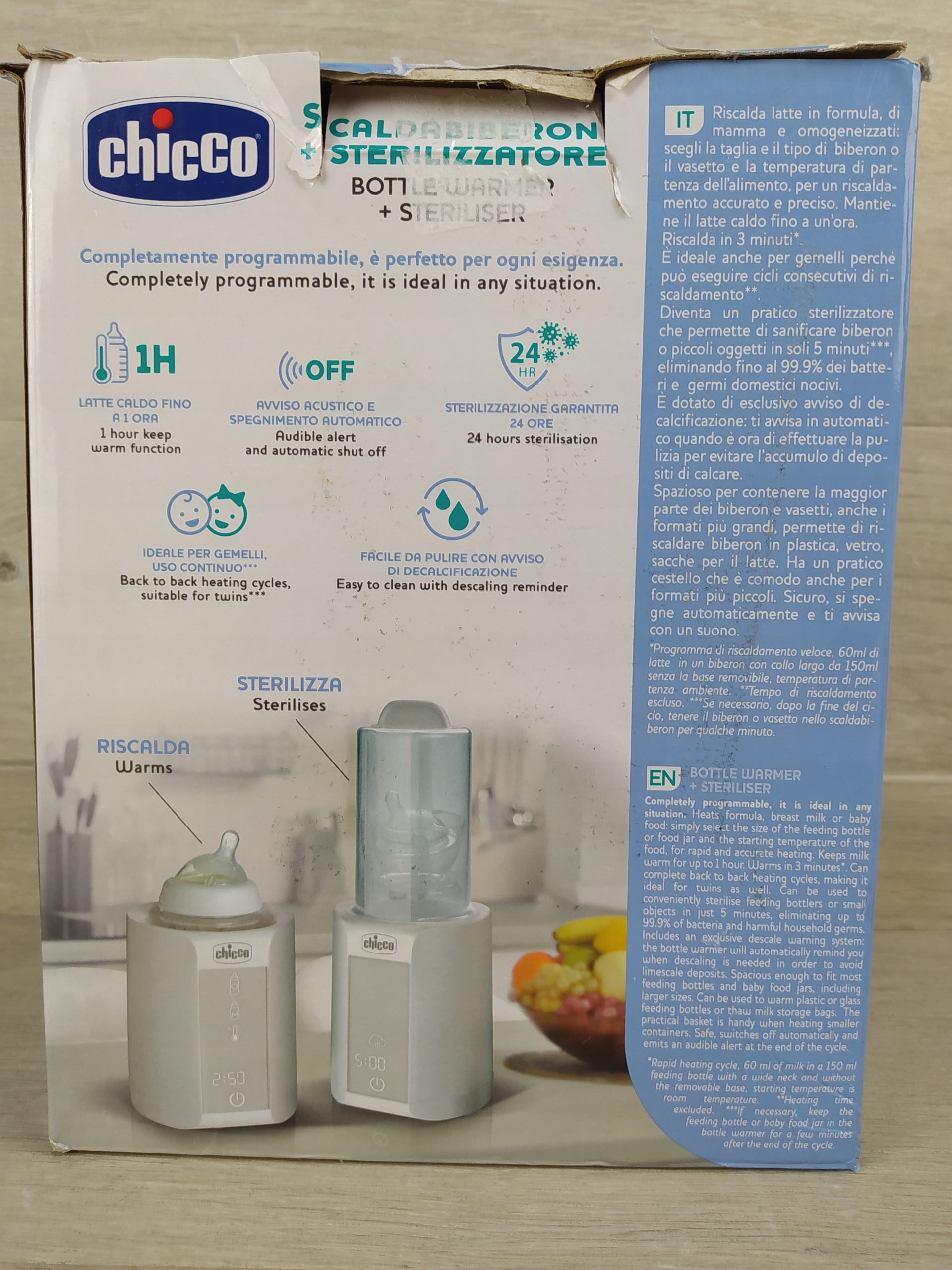 - Новий стерилізатор для підігріву пляшечок Chicco допомагає швидко нагріти молоко та дитяче харчування та швидко й ефективно стерилізувати пляшечки