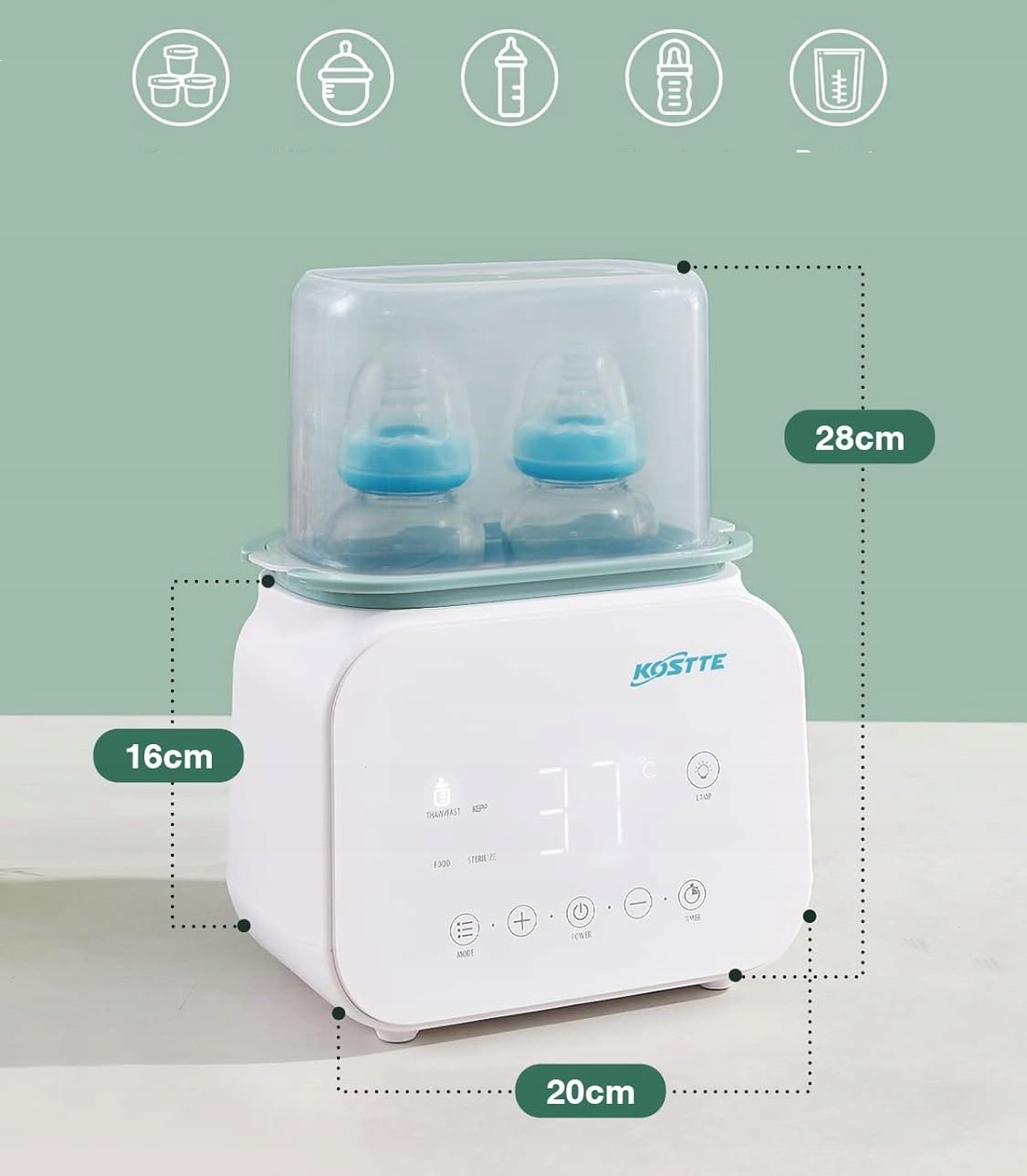 швидке нагрівання протягом 3-8 хвилин: швидке опалення молока, не втрачаючи поживних речовин, що вони задовольнять потреби швидкого опалення молока. Він також може розморожити молоко матері та нагрівати їжу для немовлят. Нагріває протягом 24 годин, щоб в будь -який час підготувати мої формули для немовлят.