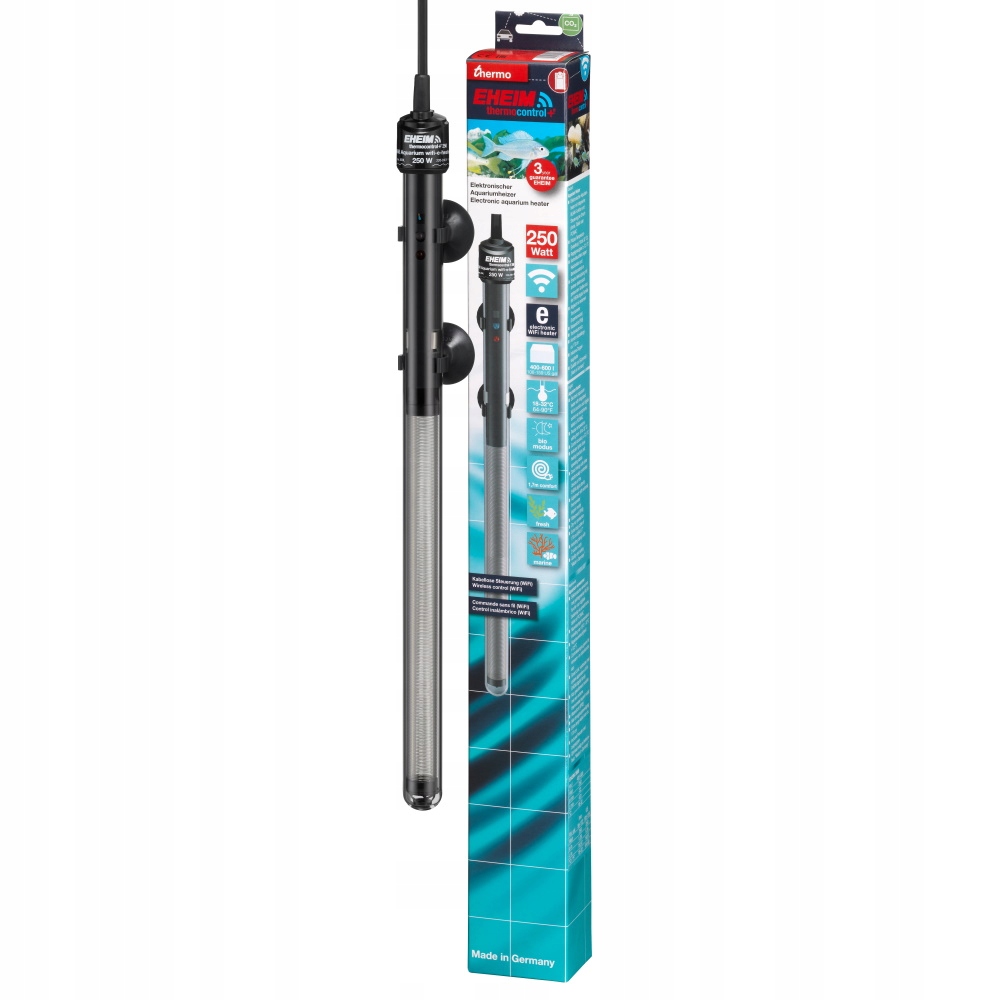 Електронний акваріумний нагрівач із вбудованою функцією WLAN та цифровим керуванням через смартфон, планшет або ПК/MAC. Точне налаштування температури в діапазоні від 18 до 32 °C Точність регулювання ± 0,5 °C Сигнальні лампочки показують функцію нагріву та робочий стан Сповіщення на збережену адресу електронної пошти, як тільки температура відхиляється на ± 2 °C Інтелектуальне підключення до інших пристроїв з електронним керуванням із сімейства EHEIM.digital Синхронізація: регулювання температури подачі води або зниження заданої температури вночі тощо) За необхідності регулювання через зовнішній термометр (експертний режим) Водонепроникність (IPX8) - для оптимального прийому сигналу Wi-Fi занурте обігрівач у воду до позначки Захист від сухого ходу (Thermo Safety Control) Зручна довжина кабелю прибл. Подвійний тримач 170 см із присоскою в комплекті 4 розміри для акваріумів від 200 до 1000 літрів Підходить як для прісної, так і для морської води Найвищий рівень безпеки та надійності з 3-річною гарантією. Зроблено в Німеччині