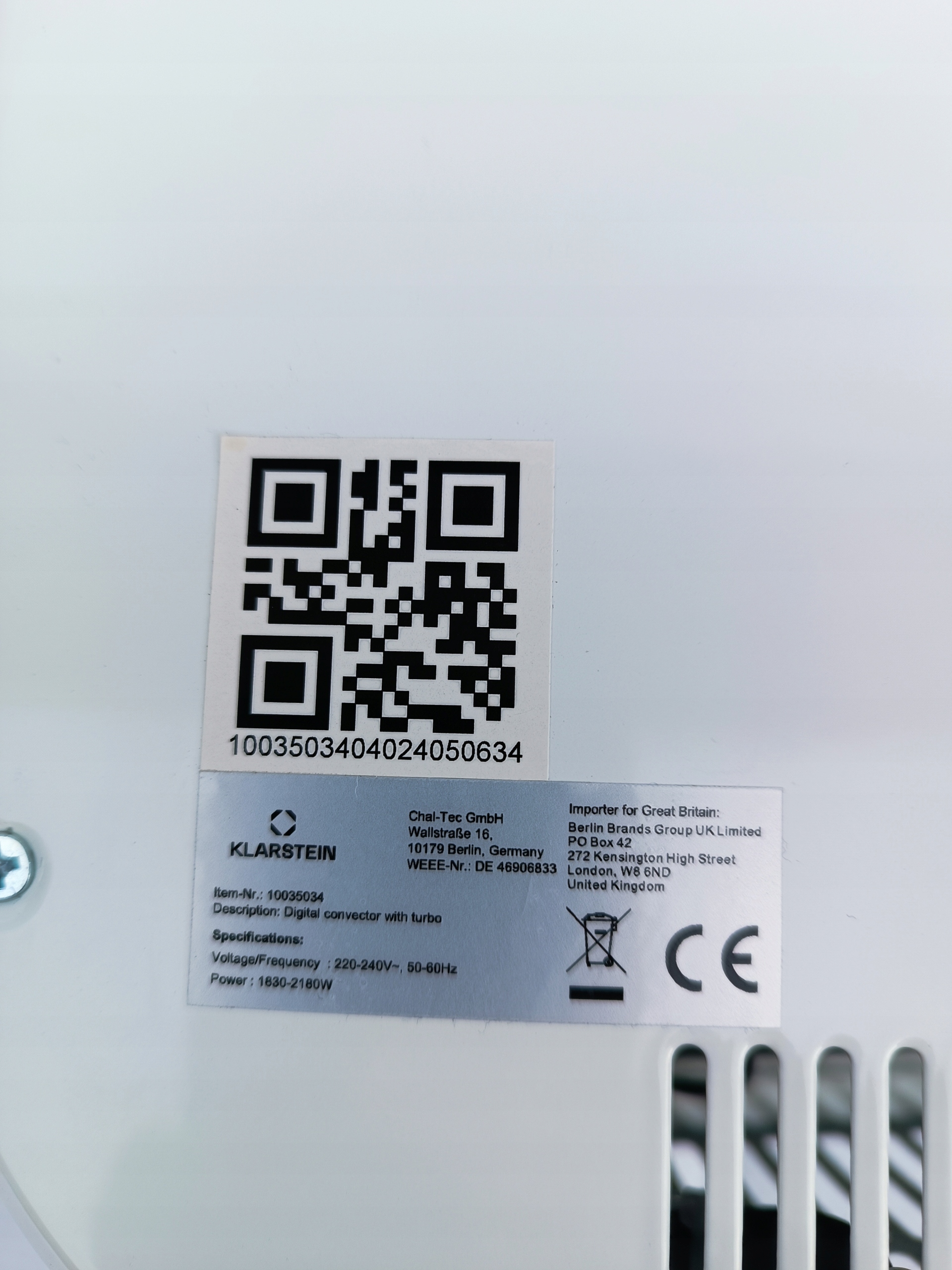✅Обігрівач Klarstein Baltrum Convector використаний, відсутній