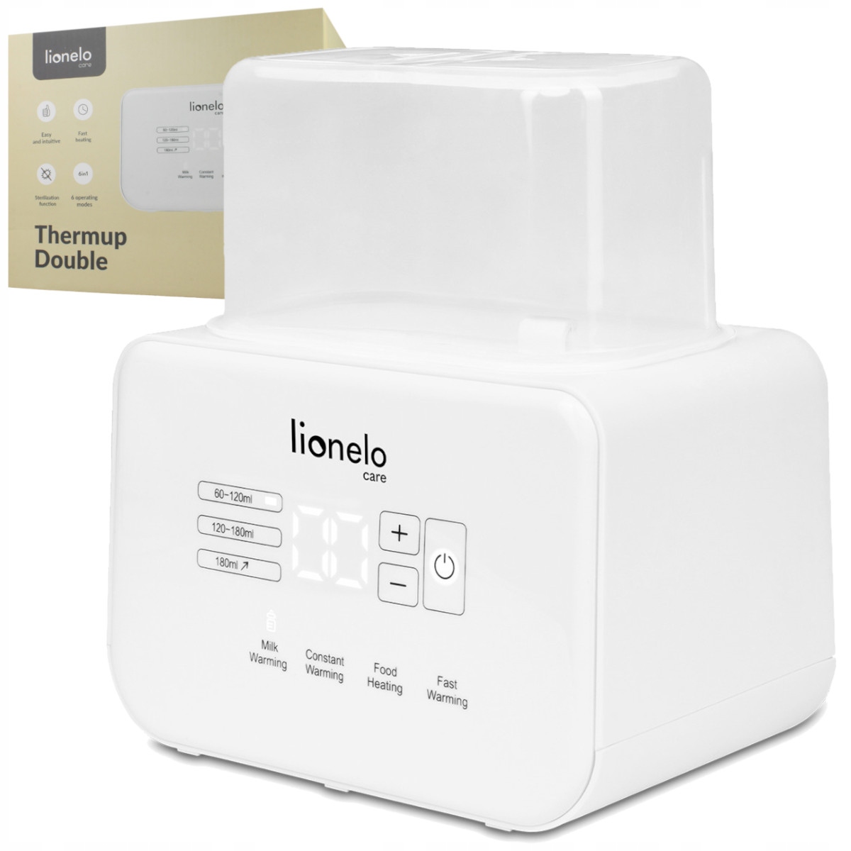 Після досягнення заданої температури вона постійно підтримується, тому ви можете забути про охолодження страв. Lionelo Care Thermup Double може підтримувати постійну температуру води та молока до 24 годин! Крім того, підігрівач зберігає їжу дитини теплою протягом 6 годин.