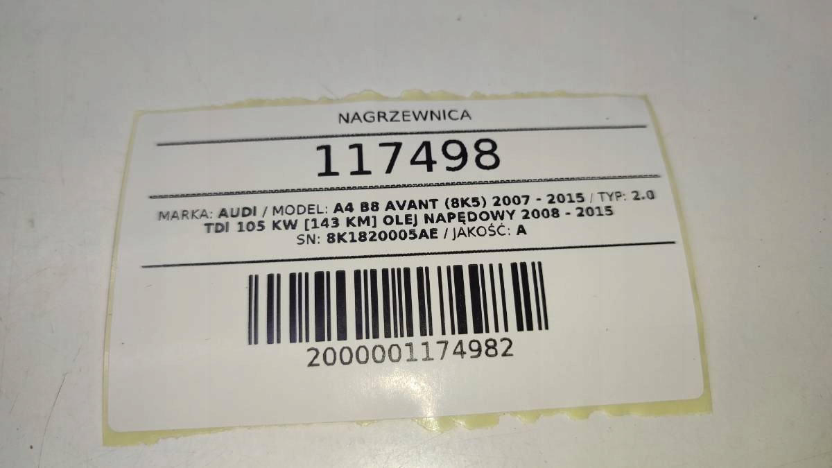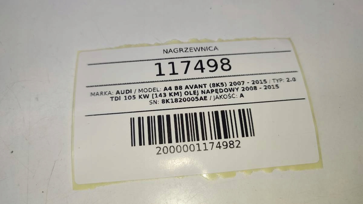 ОБІГРІВАЧ ПОВІТРОДУВНИЙ КОМПЛЕКТНИЙ AUDI A4 B8 ЄВРОПА 8K1820005AE