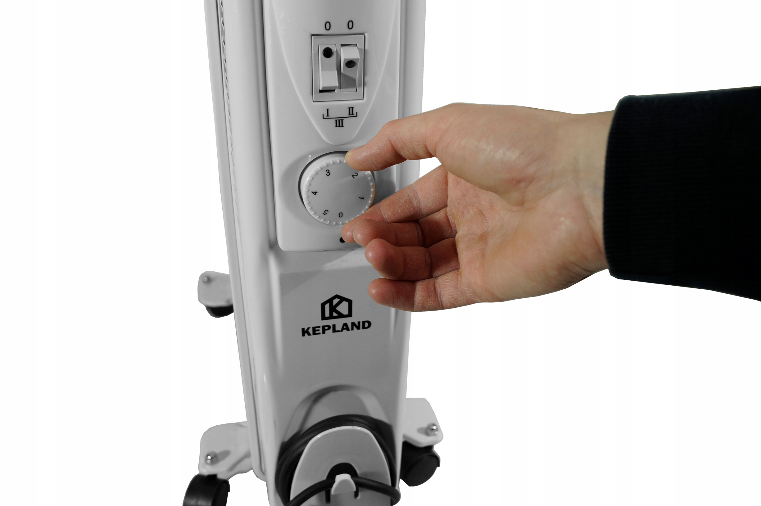 Він оснащений регульованим термостатом і трьома рівнями нагріву: 800/1200/2000 Вт