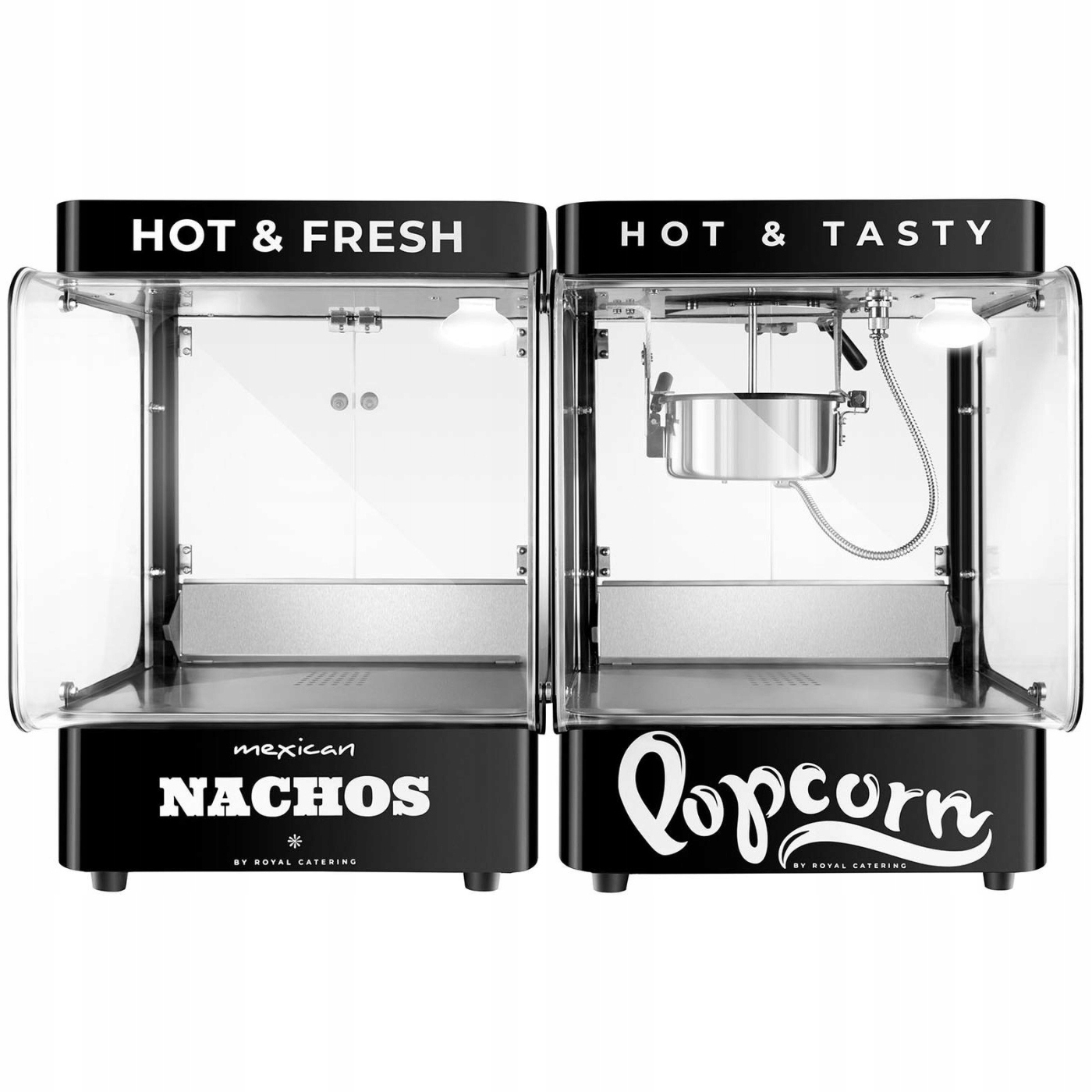 Запропонуйте своїм гостям повний пакет! Попкорн, начос і соус – все в одному прийомі. Підігрівач для начо має новий, ексклюзивний вигляд, який чудово поєднується з нашим дозатором соусу та машиною для попкорну.