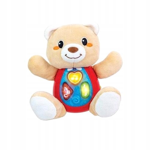 Плюшевий ведмідь – один із тих, хто обіймається. На черевці є три кольорові функціональні кнопки, які активують різні мелодії та навчають дітей основним цифрам і буквам. Крім того, має м'яку голову і ніжки.