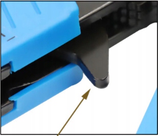- Пристрій має замок, який дозволяє щоб відкрити плоскогубці під час обтиску роз’єму - відкривання вручну відбувається після висмикування «язика» всередині обтискача