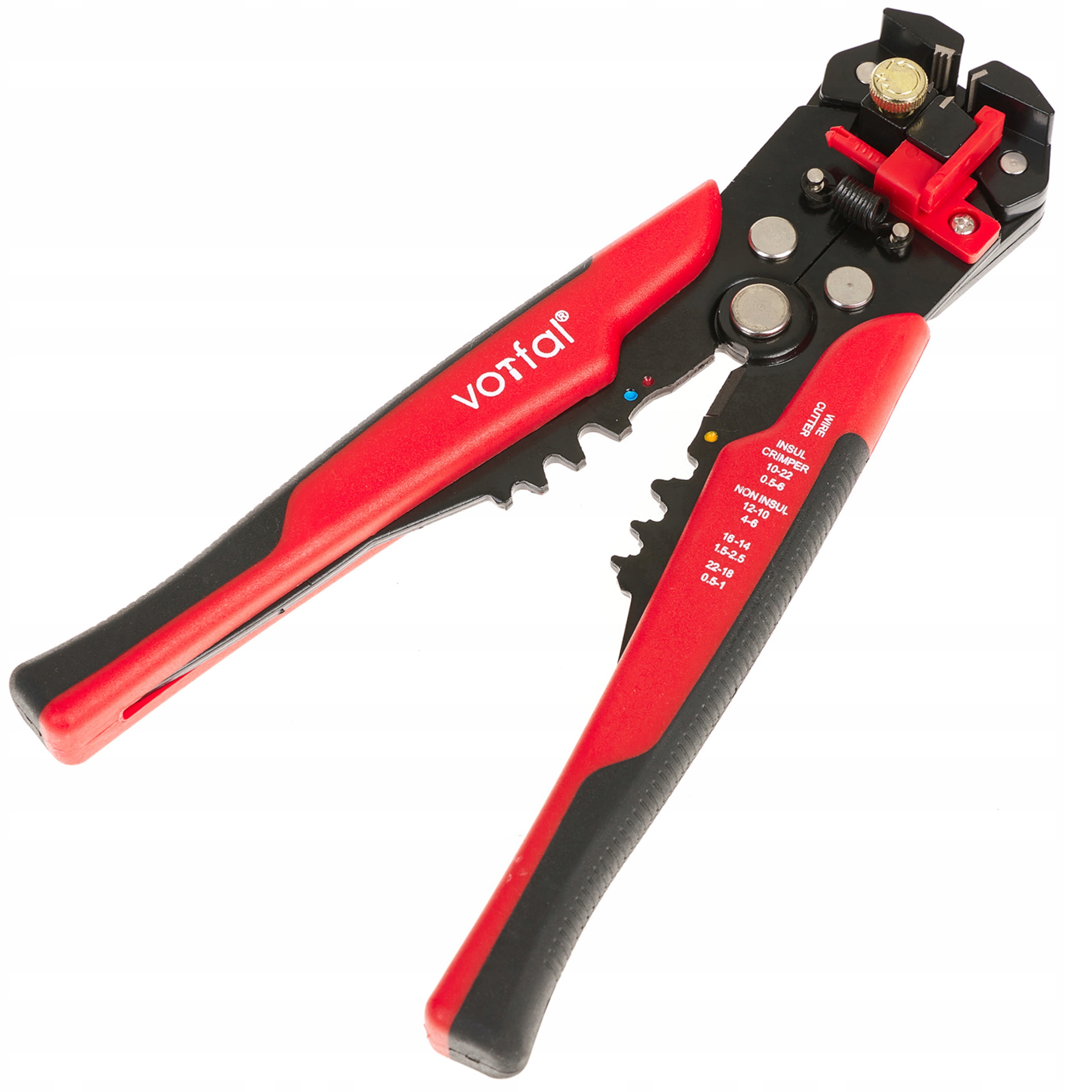 Цей продукт є практичним інструментом, який можна використовувати як засіб для зачистки проводів, а також як різак і обжимок для ізольованих і неізольованих клем роз’ємів. Інструмент має автоматичний передній механізм, завдяки якому нам не потрібно докладати багато зусиль для зняття ізоляції. За допомогою ручки регулювання ми можемо легко налаштувати знімач відповідно до товщини дроту.