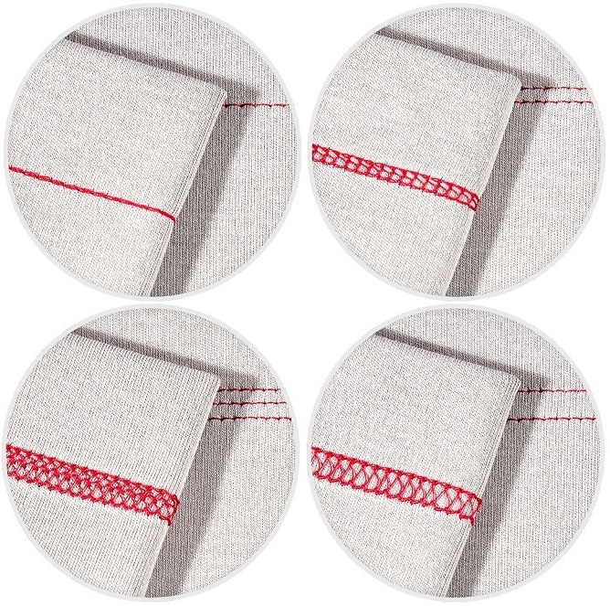 Ланцюговий стібок з однією голкою та двома нитками. Ідеально підходить для обгортання тканин, пришивання рубців, з’єднання тканин і для декоративних ефектів.