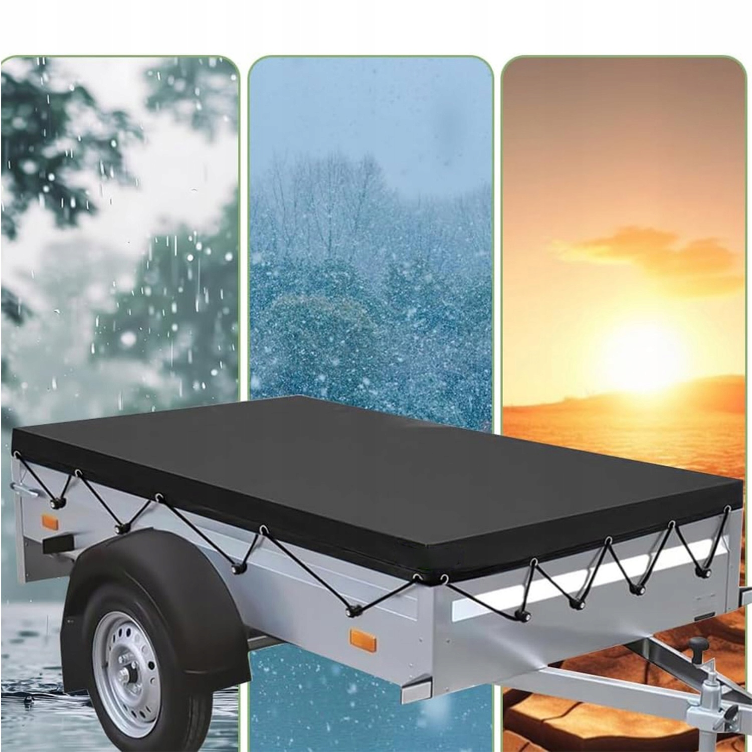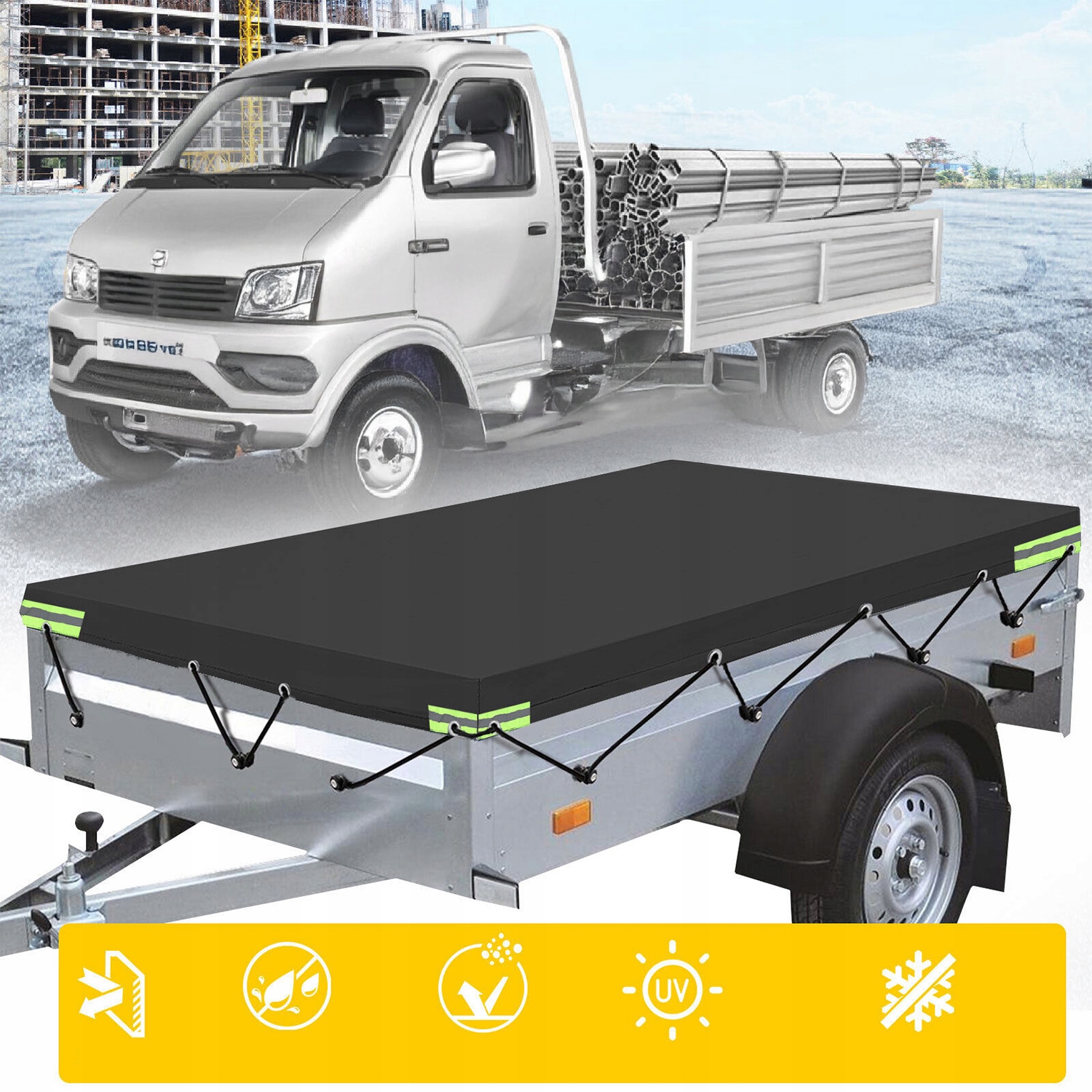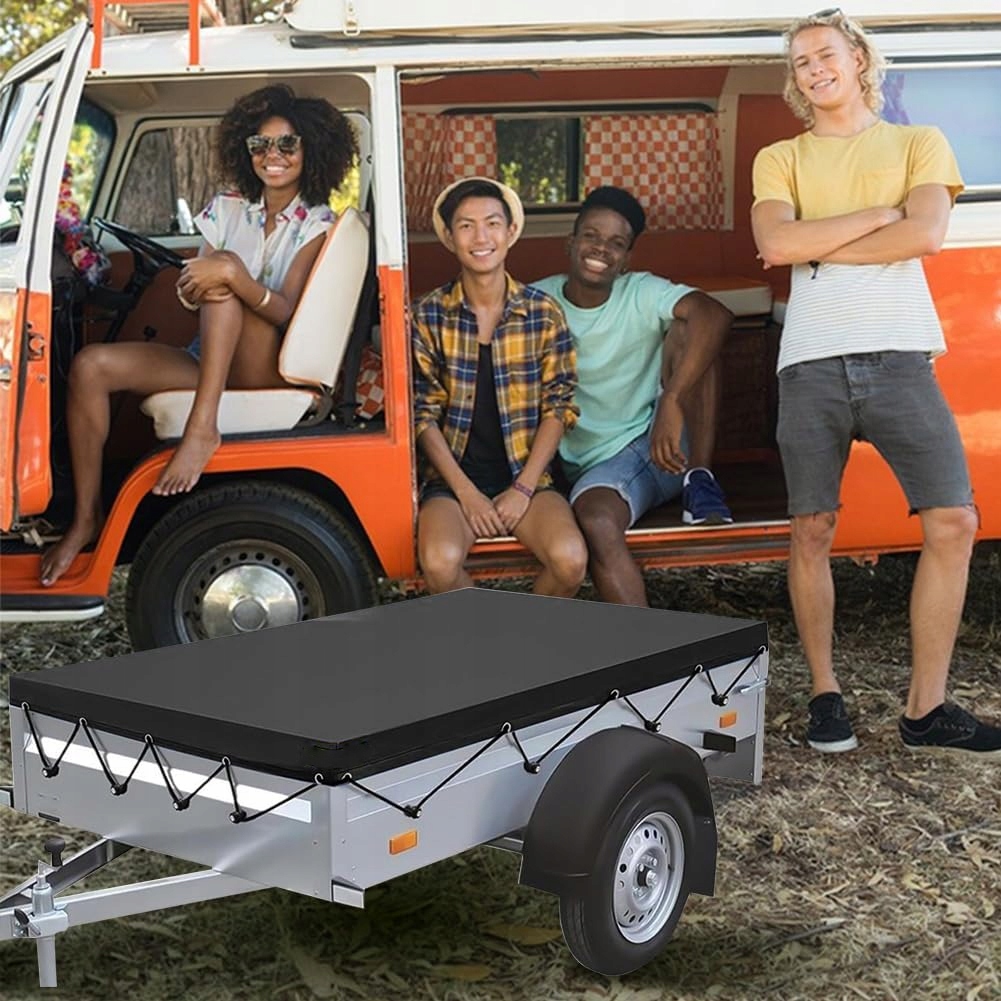 🌠, оснащений міцною системою ременів, її можна міцно прикріпити навколо рами причепа і не втрачає і не падає, навіть під час руху на великій швидкості або на сильному вітрі. Підсилений HEMS, щоб запобігти ризику розриву після тривалого використання. Весь край подвійний оброблений, твердий і структурно стабільний, а також стійкий до деформації, навіть з сильним розтягуванням.