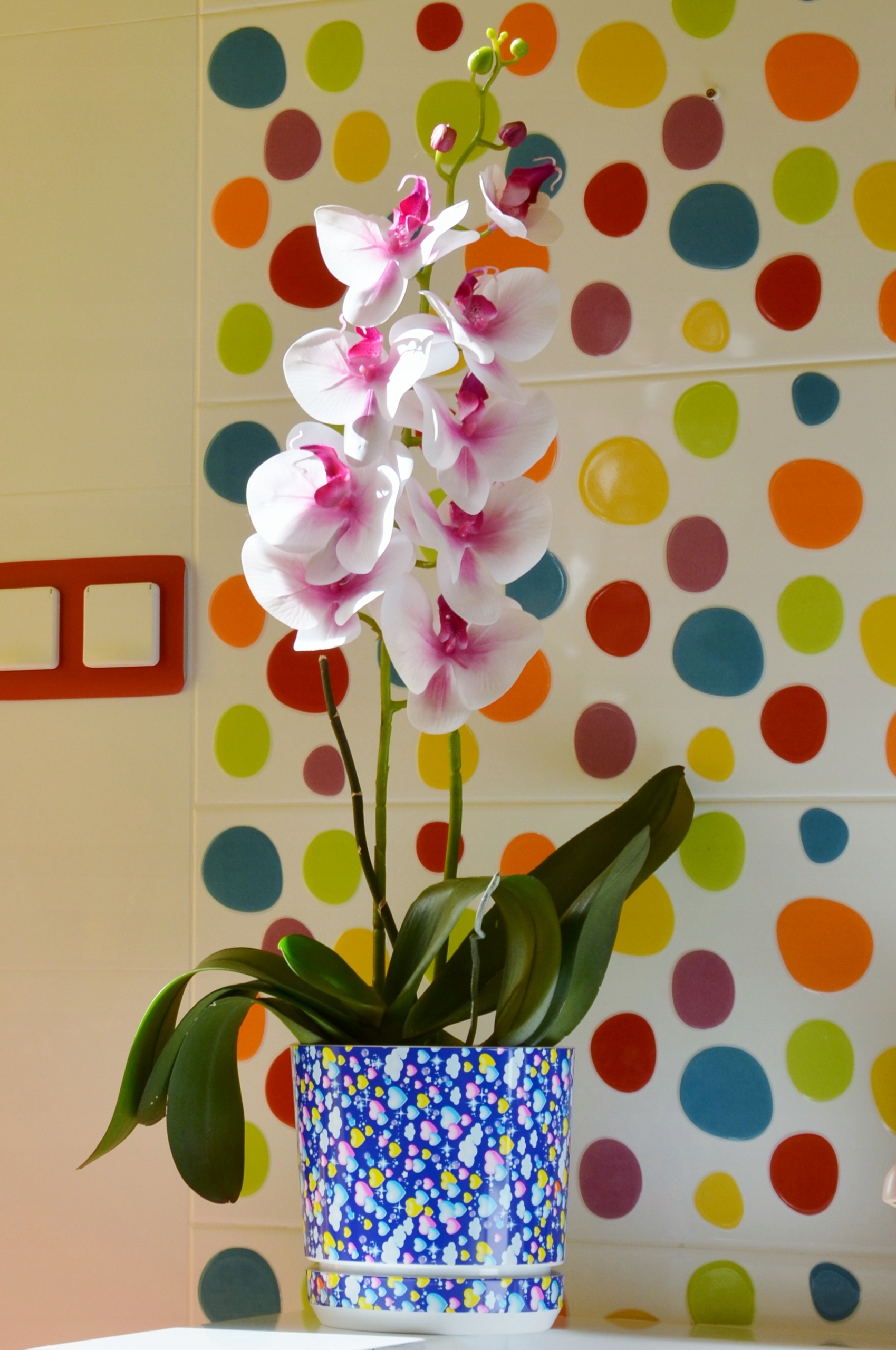 Візерунки флуо горщиків чудово гармонують із квіткою орхідеї чи вересу (на фото). Ви Ви також можете вирощувати в них свої улюблені квіти, трави або квіти.