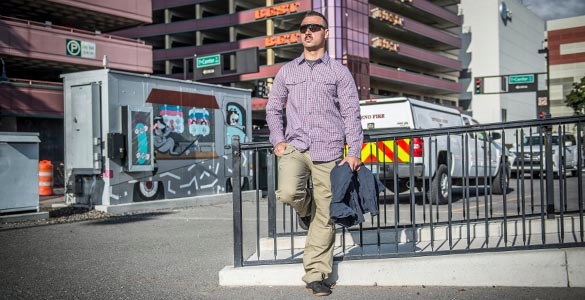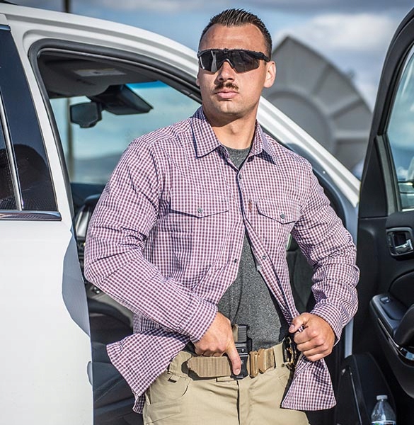 сорочка обкладинка Helikon прихована носіння , виготовлена з легкого матеріалу з безсмертним, картаним малюнком, дозволяє поєднуватися з натовпом під час будь -яких міських заходів. Дві кишені грудей та одна прихована кишеня на блискавці легко вміщують ваші цінні предмети. Але ця сорочка лише на перший погляд дивиться на один із багатьох доступних у магазинах - коли ви уважно придивитесь до неї, виявляється, що вона має унікальна система кріплення . Здається, це, здається, кріпиться кнопками, але одна сильна потяг для її печатки виявляє, що насправді сорочка має засувки замість кнопок , які дозволяють отримати негайний доступ до зброї, складів, телескопічних паличок або іншого обладнання, прихованого під ним.