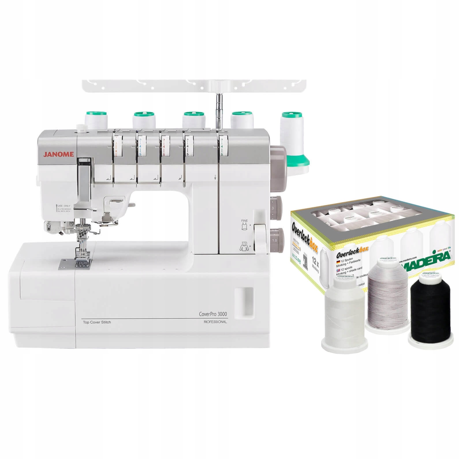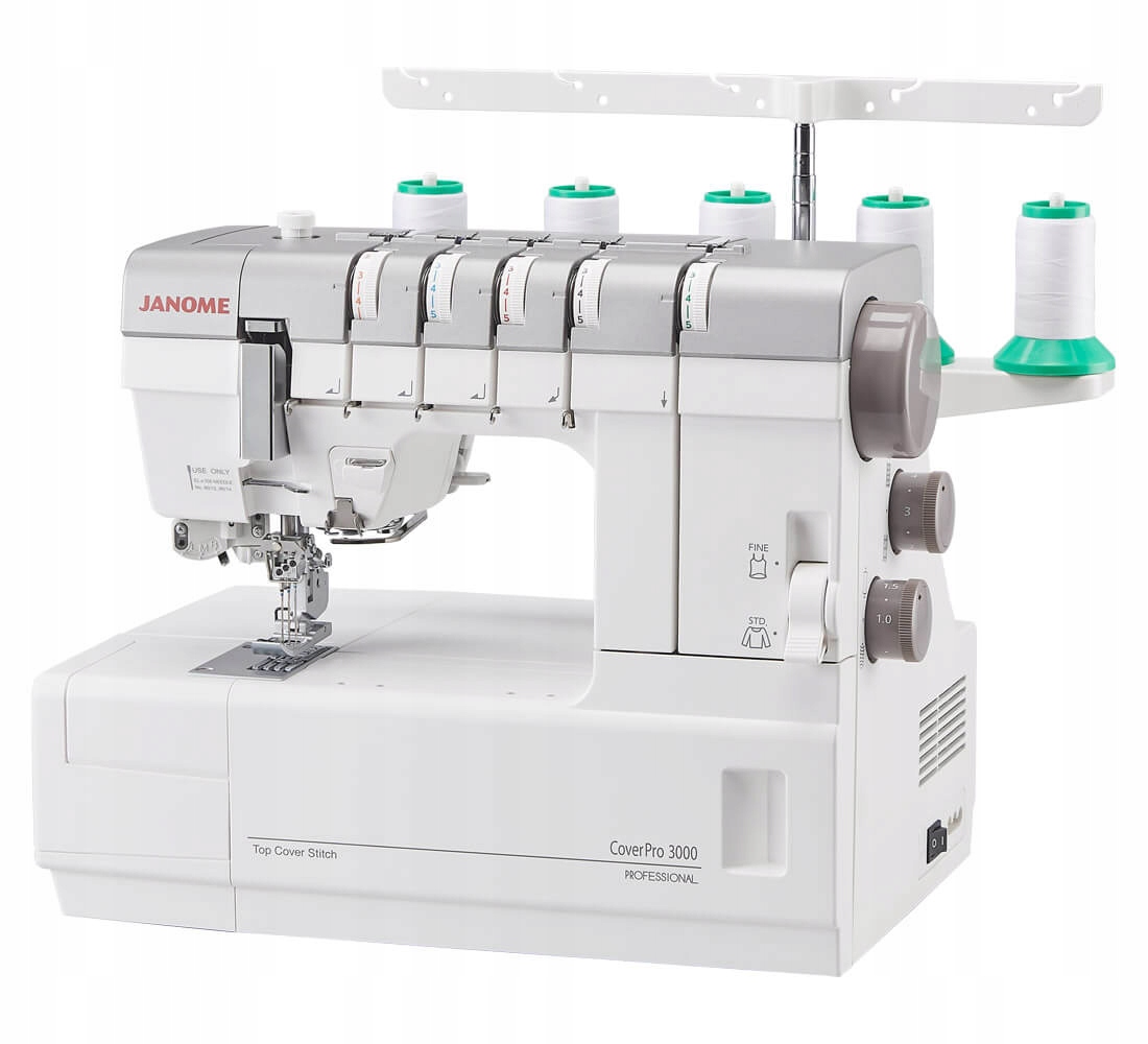 Janome CoverPro 3000 Professional — це рендерер із вбудованим верхнім переплетенням із серії Heavy Duty. Це перша обкладинка Janome, яка, окрім типових для обкладинки стібків, має також функцію верхнього переплетення. Крім того, це перша кришка бренду Janome, яка відноситься до серії Professional - Heavy Duty.