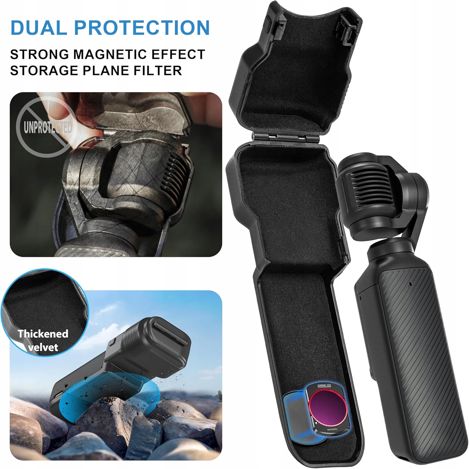 【Ексклюзивний дизайн】 Ця кришка об'єктива має ексклюзивний візерунок нового акаміт, який відповідає корпусу кишені 3 і є м'яким і захисним, а також не спричиняє зносу через удари. Побудований -в кишені для фільтра, тож ви можете взяти з собою звичайні фільтри (крім ширококутного фільтра) скрізь!