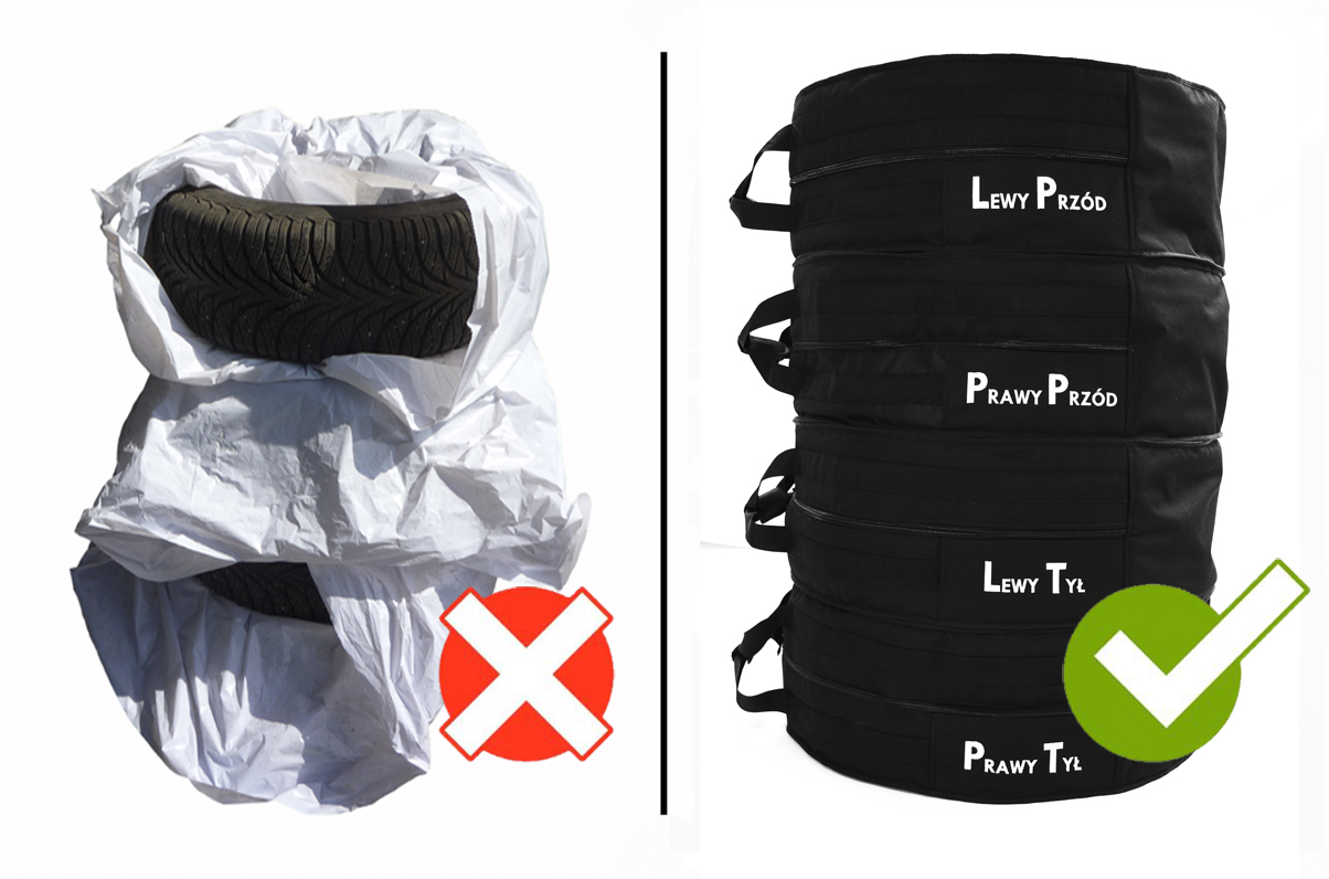 Нижче -шини/ цілі колеса у версії " premium ", виготовлені з трьох шарів (Kodura 600x600/ піни, що захищають від пошкодження обода/ Kodura 600x300, розроблених і завдані LASOTA, пристосованих до розміру, як якості Петля з петлею 1 см, летерна біза, подвійний навантажений ремінь навколо кришки 40 мм, з підйому в кілька сотень кілограмів, щоб ви могли нести шини в обкладинці без страху, а також шини на ободах.