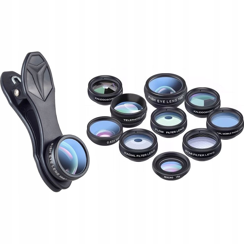 Як щодо фотографії вашого кота з ефектом калейдоскопа? Або, можливо, ідеально чіткий крупний план цих чудових котячих очей? Набір з 10 універсальних лінз з високоякісного скла з кліпсою подарує абсолютно новий вимір фотографіям на телефоні. Серед них ви знайдете ефекти калейдоскопа, фільтр, що усуває відблиски та відблиски, окуляри, що збільшують фотоефекти, об'єктив "Риб'яче око", ширококутний об'єктив або з ефектом розмиття фону.