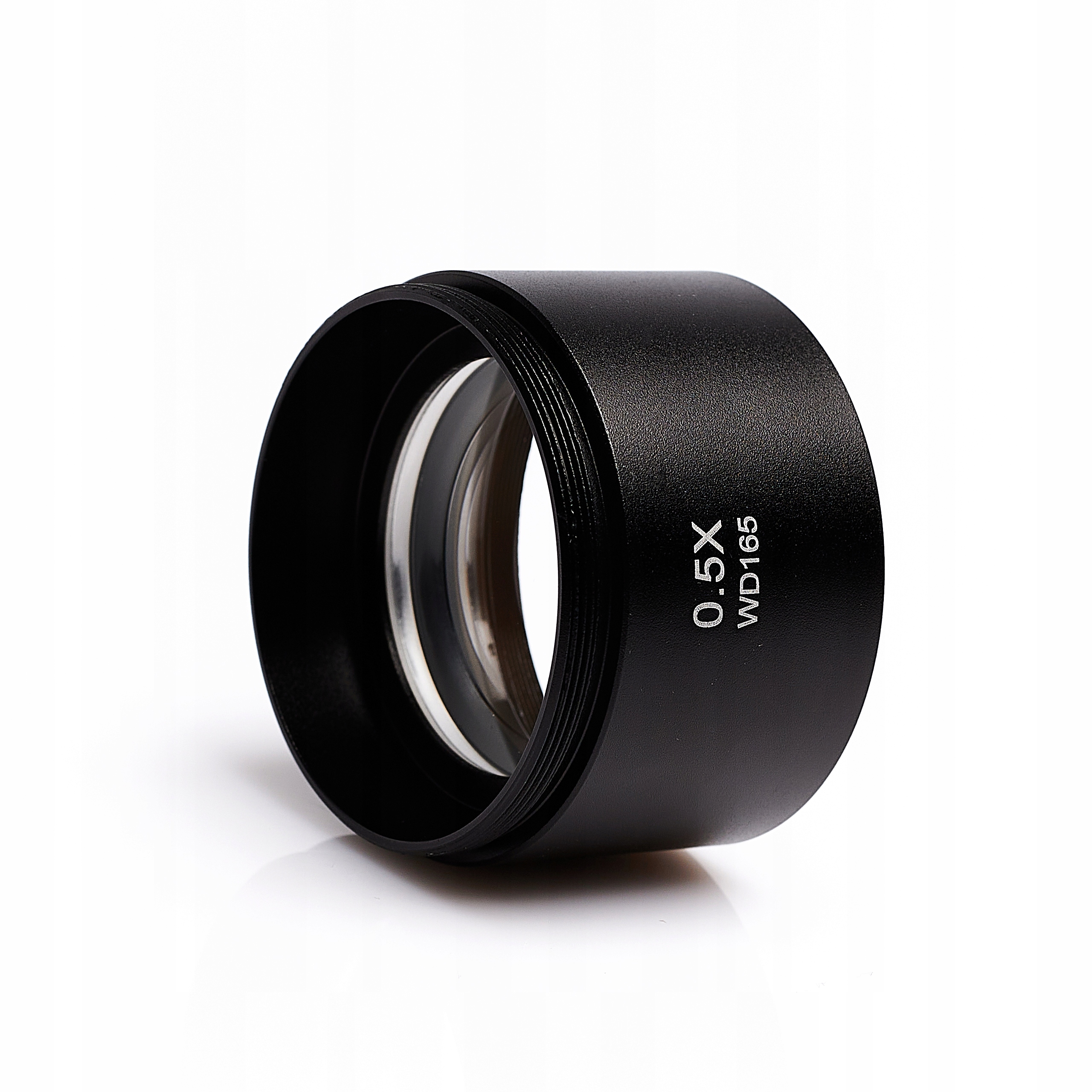 Об'єктив 0,5x для стереоскопічних мікроскопів із нашої пропозиції. Використовується для збільшення діапазону збільшення. Об’єктив кріпиться за допомогою різьби в нижній частині стереоскопічної головки.