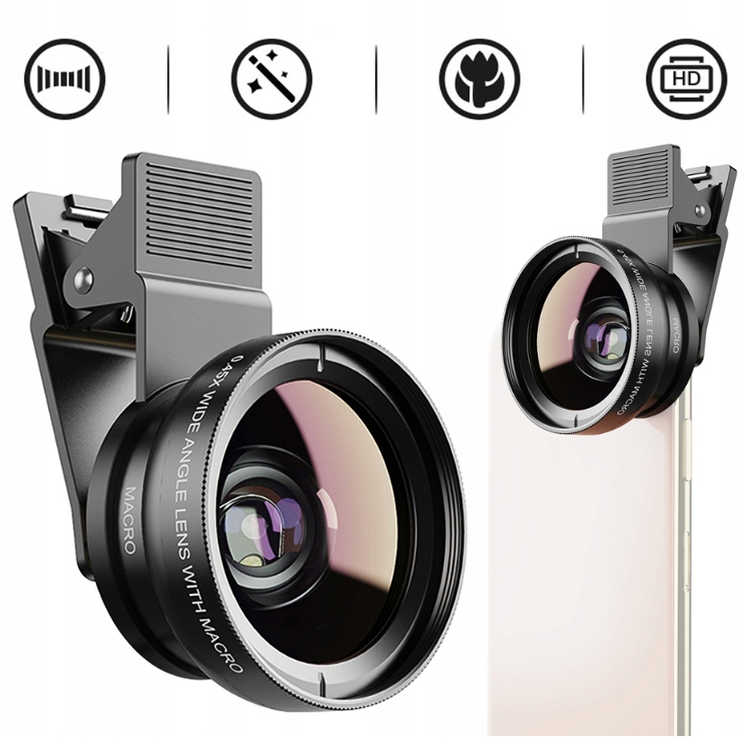 Наш набір лінз 2-в-1 є ідеальним інструментом для користувачів телефонів, які хочуть досягти привабливих фотографічних ефектів.